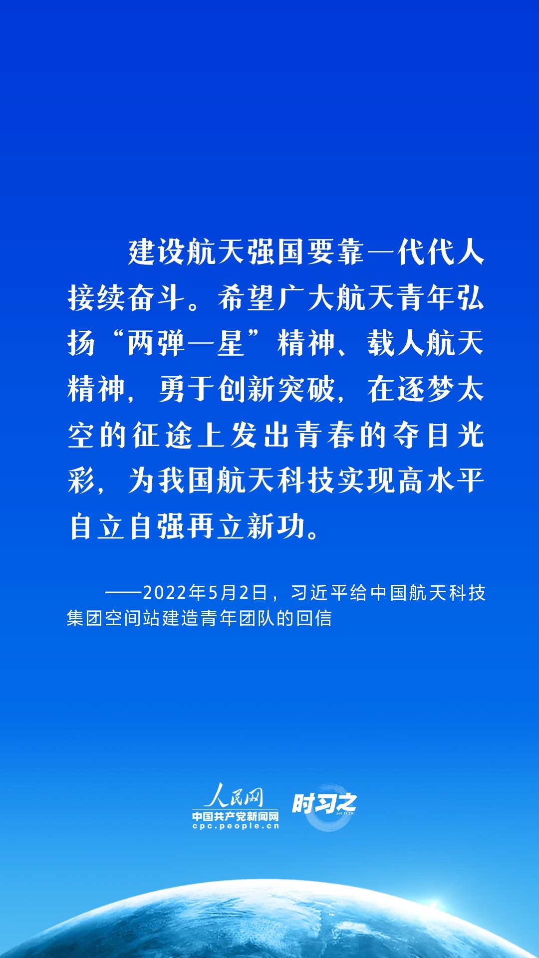航天夢是強國夢的重要組成部分。黨的十八大以來,習近平總書記高度重視我國航天事業(yè)發(fā)展,在不同場合,頻頻提及航天精神,并不斷注入新的時代內(nèi)涵,激勵中國航天以勃發(fā)之氣,巡天探宇叩問蒼穹,向著建設航天強國的目標勇毅前行。