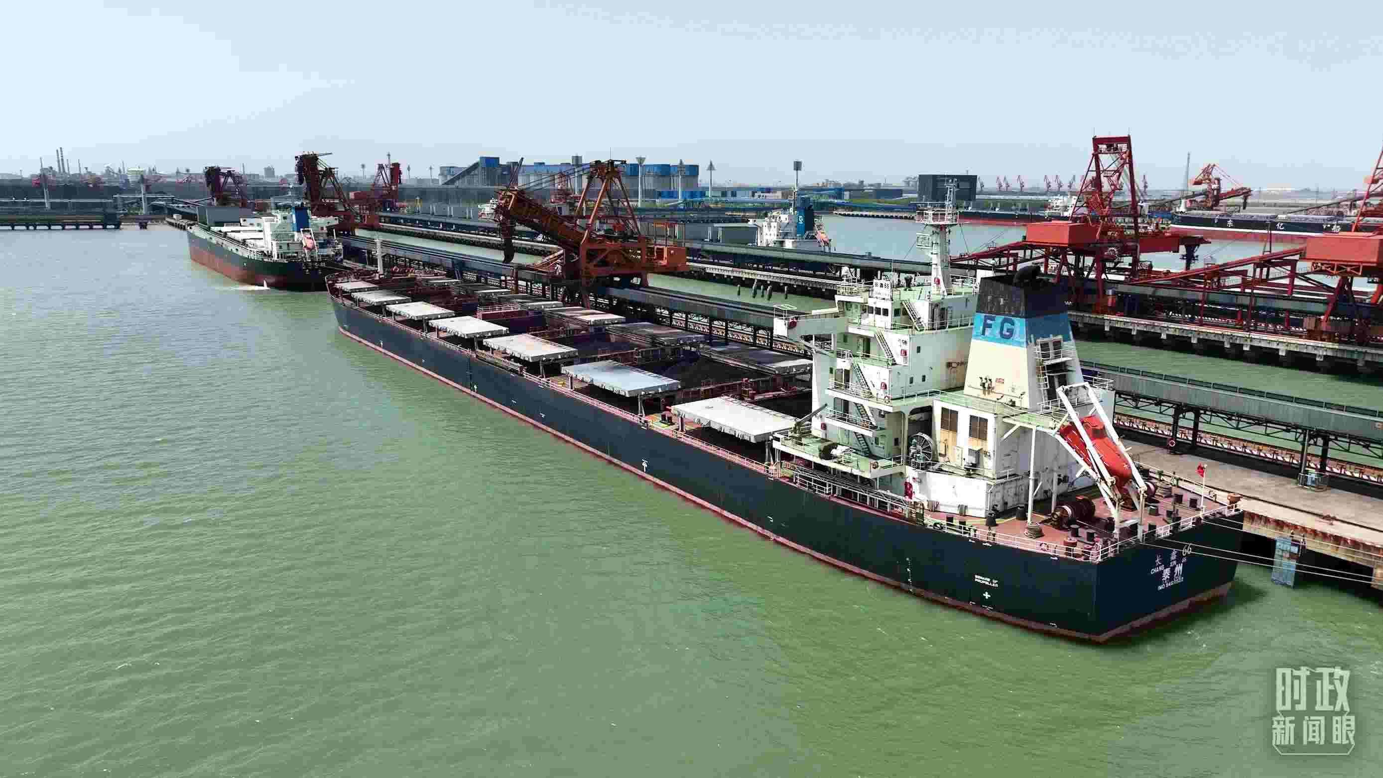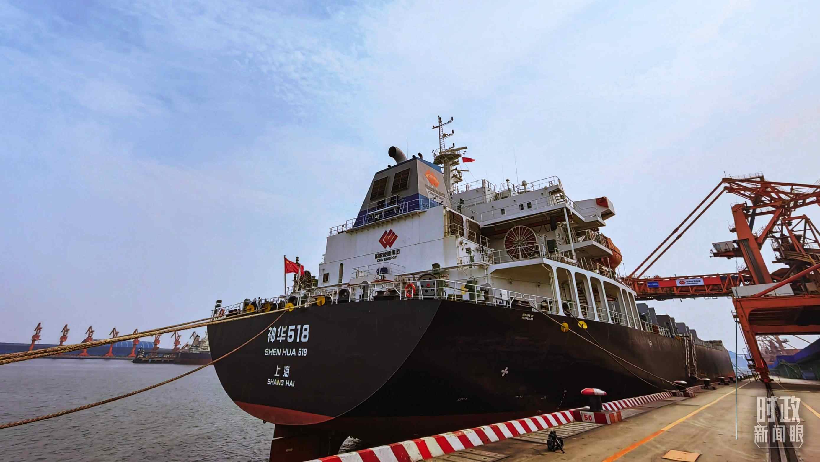 △停靠在黃驊港的神華518輪。(總臺(tái)央視記者張曉鵬拍攝)