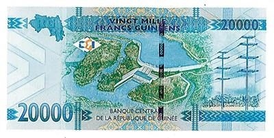 △在幾內(nèi)亞央行發(fā)行的該國最大面值兩萬幾郎紙幣上,印著中國長江三峽集團(tuán)有限公司總承建的凱樂塔水電站。