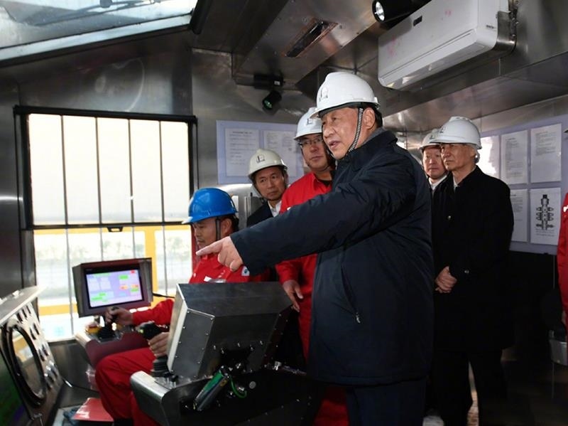 △2021年10月21日,習(xí)近平總書記來到勝利油田勘探開發(fā)研究院和鉆井平臺,了解油田創(chuàng)新發(fā)展等情況。