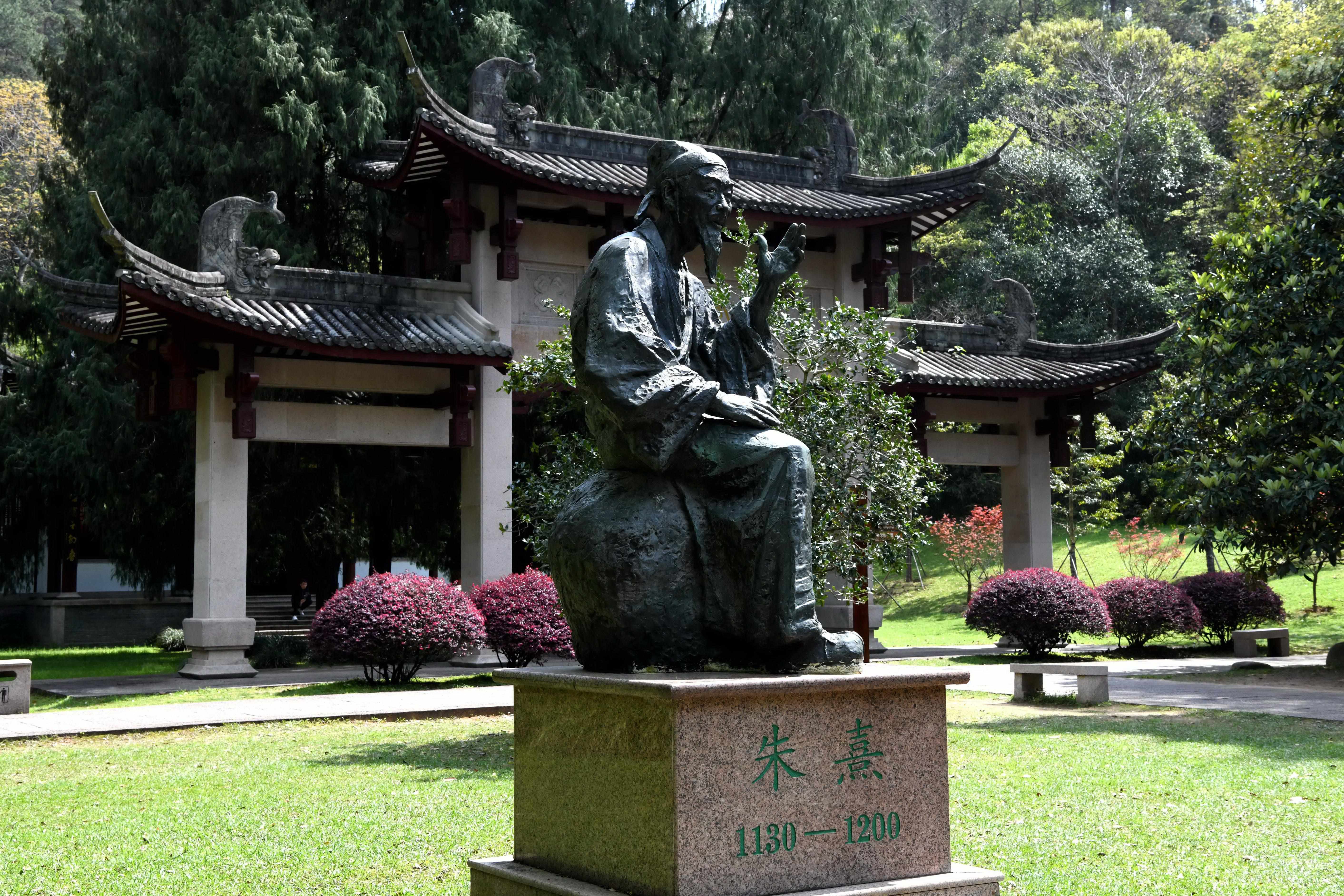 △福建武夷山朱熹園門口的朱熹雕塑。朱熹園是武夷山世界文化遺產(chǎn)的核心部分,也被譽為朱子理學(xué)的“搖籃”。
