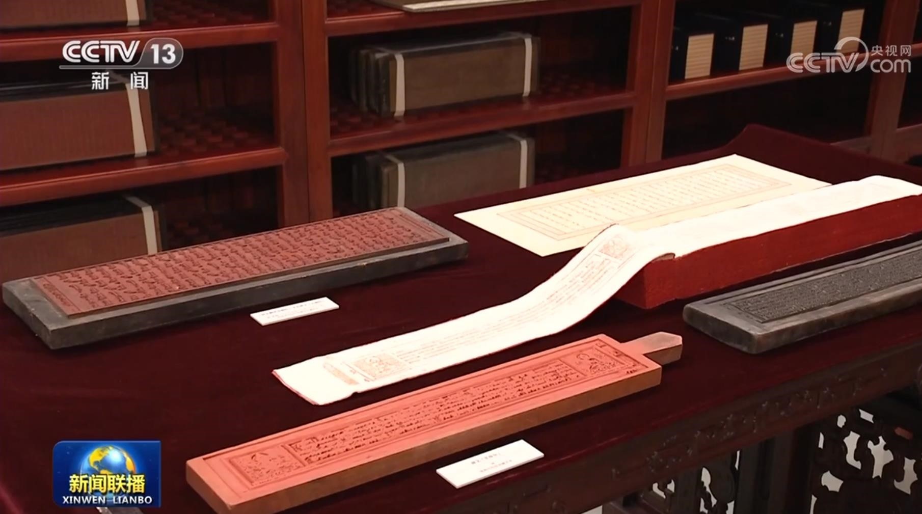 ▲圖為習近平總書記參觀的“漢藏蒙滿文大藏經(jīng)雕版合璧”庫展展品。