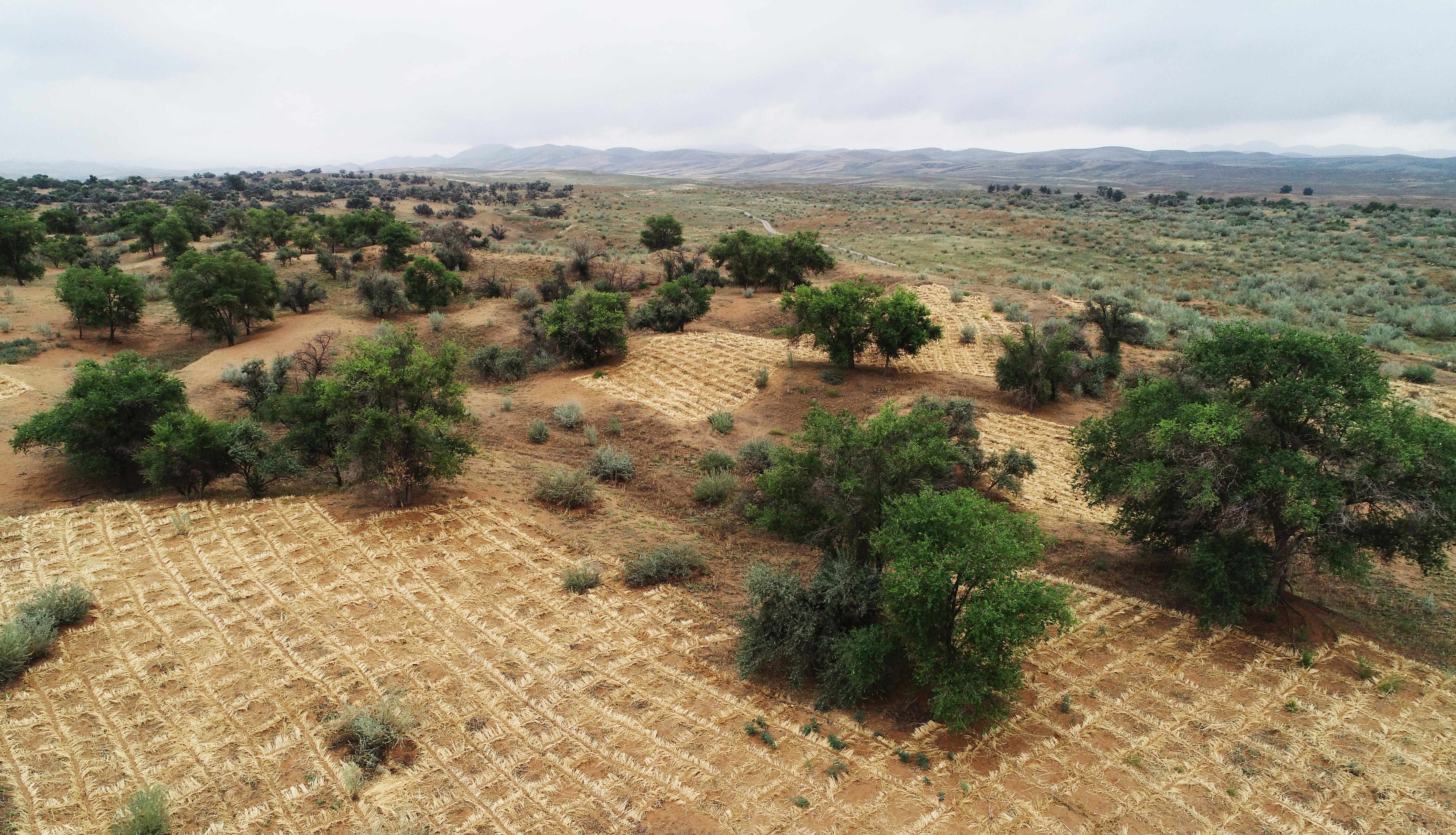 在多年與風沙的抗爭中,中國摸索出了不少實用的防沙方法,“麥草方格”固沙法就是其中之一——用麥草、稻草等材料在沙漠中扎成方格,借此截留水分,降低風沙速度。