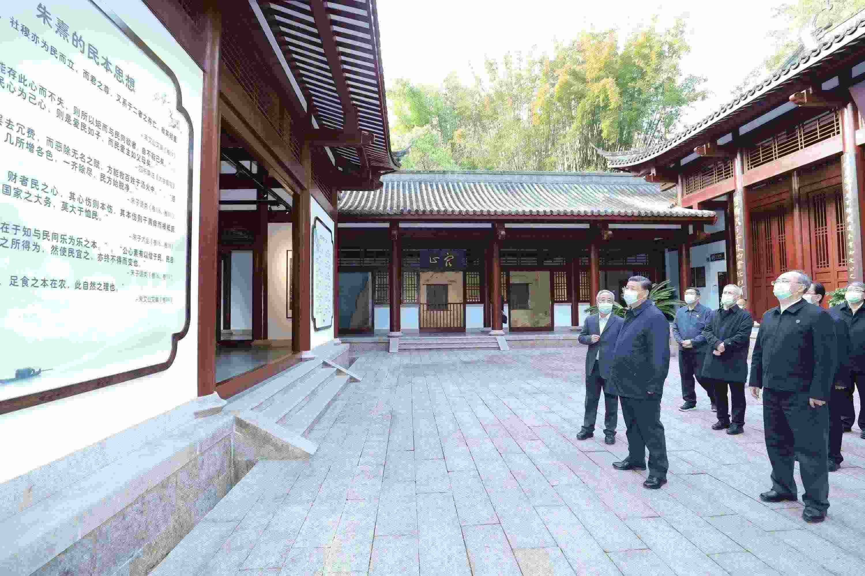 △2021年3月22日,習近平總書記在福建南平武夷山朱熹園,了解朱熹生平及理學研究等情況。