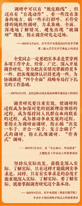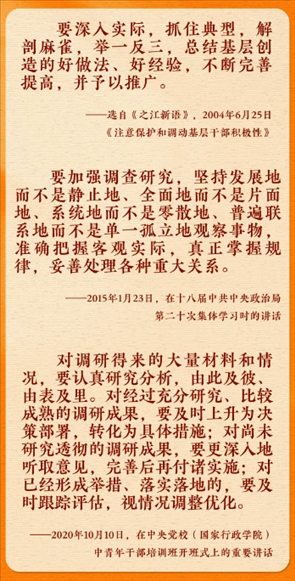 在全黨大興調(diào)查研究之風(fēng)的今天,讓我們重溫總書(shū)記的有關(guān)論述,跟著總書(shū)記學(xué)習(xí)調(diào)查研究。