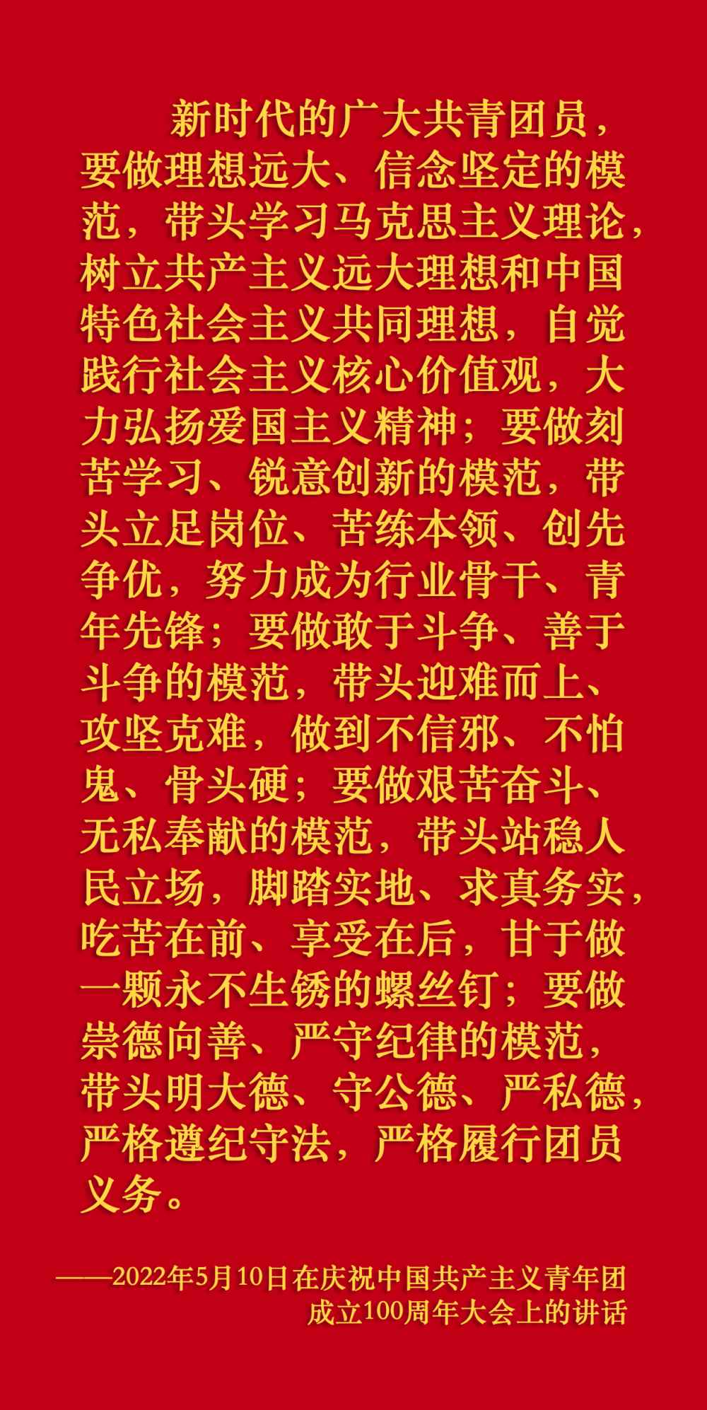 在慶祝中國共產(chǎn)主義青年團成立100周年大會上,習(xí)近平總書記從黨和國家事業(yè)發(fā)展全局出發(fā),給共青團明確提出了4點希望,飽含深情、催人奮進。