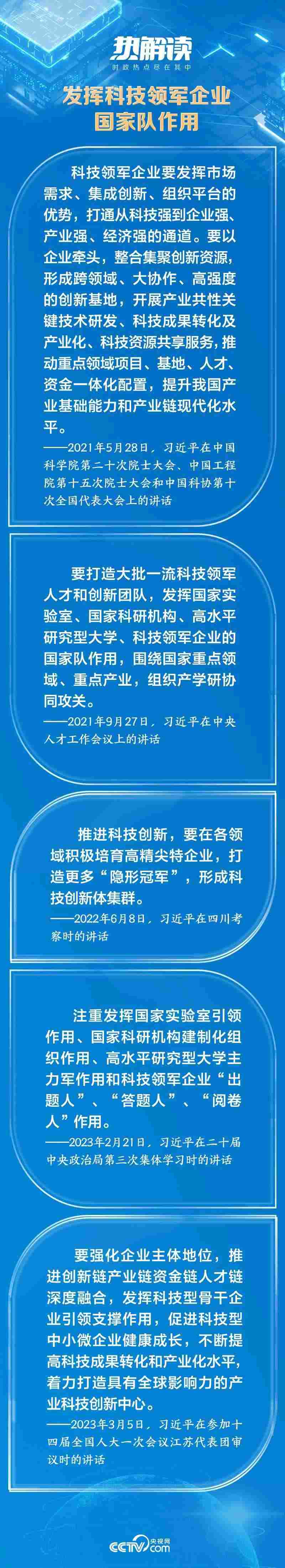 企業(yè)是市場(chǎng)的主體,是推動(dòng)科技創(chuàng)新的生力軍。作為國(guó)家戰(zhàn)略科技力量的重要組成部分,總書記對(duì)科技領(lǐng)軍企業(yè)更是寄予厚望:“要自覺(jué)履行高水平科技自立自強(qiáng)的使命擔(dān)當(dāng)”,要注重發(fā)揮“科技領(lǐng)軍企業(yè)‘出題人’、‘答題人’、‘閱卷人’作用”。
