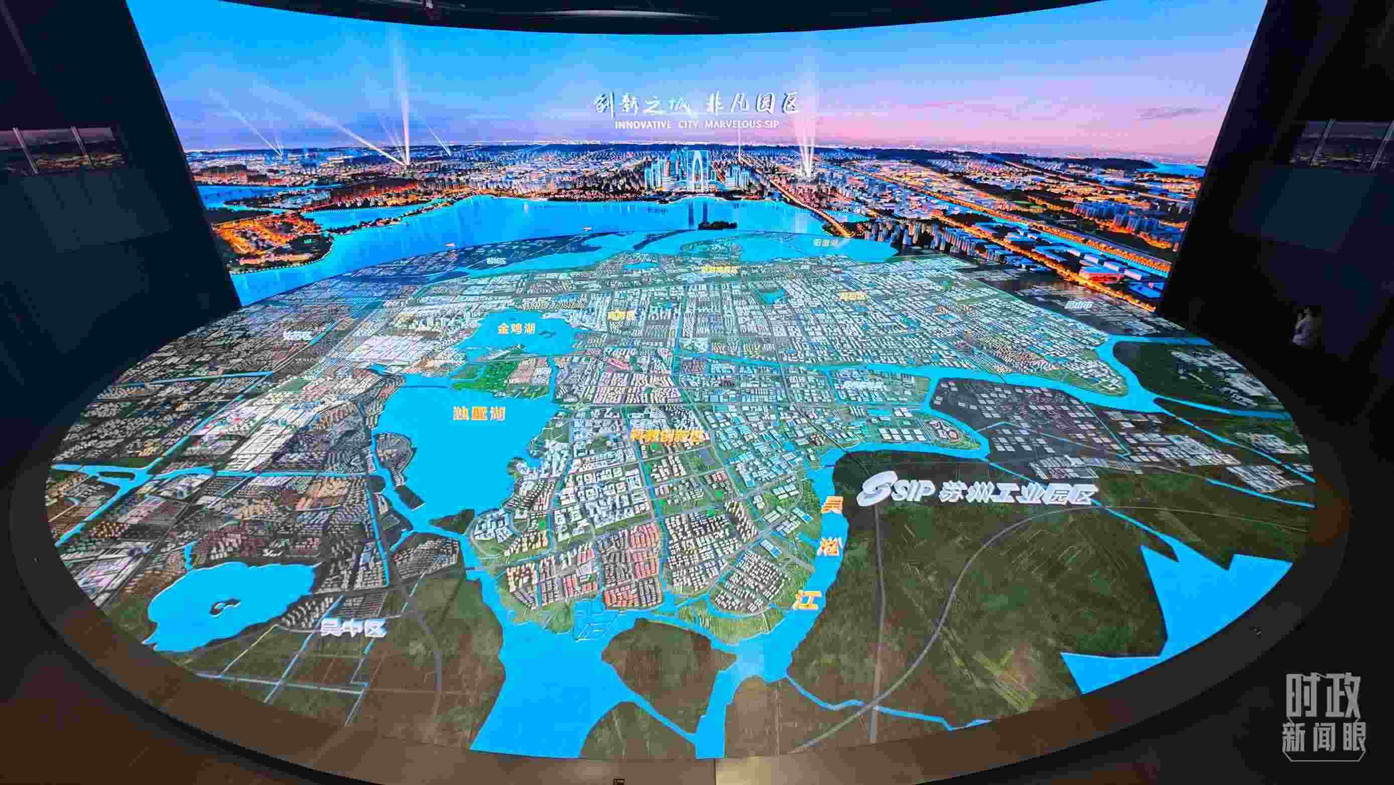 △蘇州工業(yè)園區(qū)數(shù)字沙盤。(總臺(tái)央視記者彭漢明拍攝)