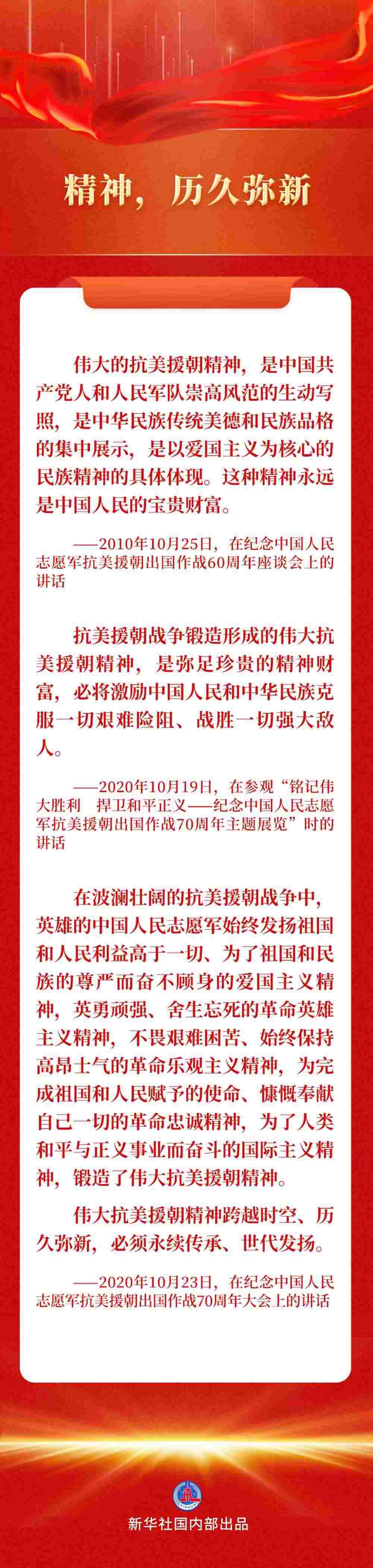 習(xí)近平總書記曾多次談起這段氣壯山河的英雄史詩,深情講述這些“最可愛的人”的動人故事,以史為鑒,為全黨全軍全國各族人民指明前行方向。