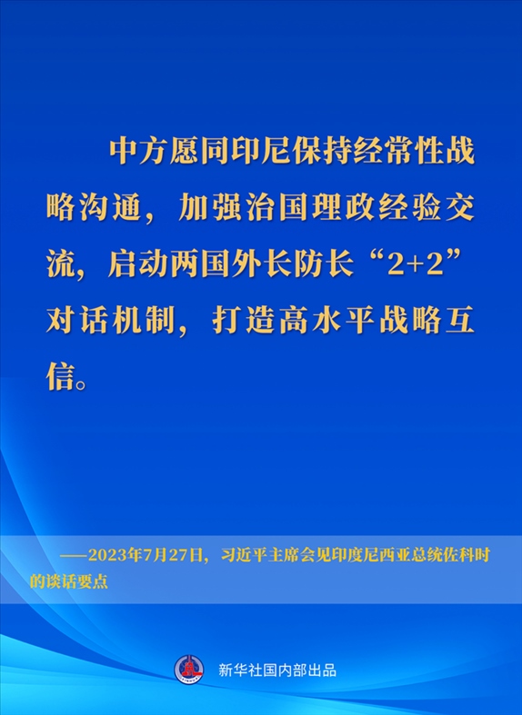 7月27日下午,國家主席習(xí)近平在成都會(huì)見來華出席第31屆世界大學(xué)生夏季運(yùn)動(dòng)會(huì)開幕式并訪華的印度尼西亞總統(tǒng)佐科。一起來看習(xí)近平主席在會(huì)見時(shí)的談話要點(diǎn)↓