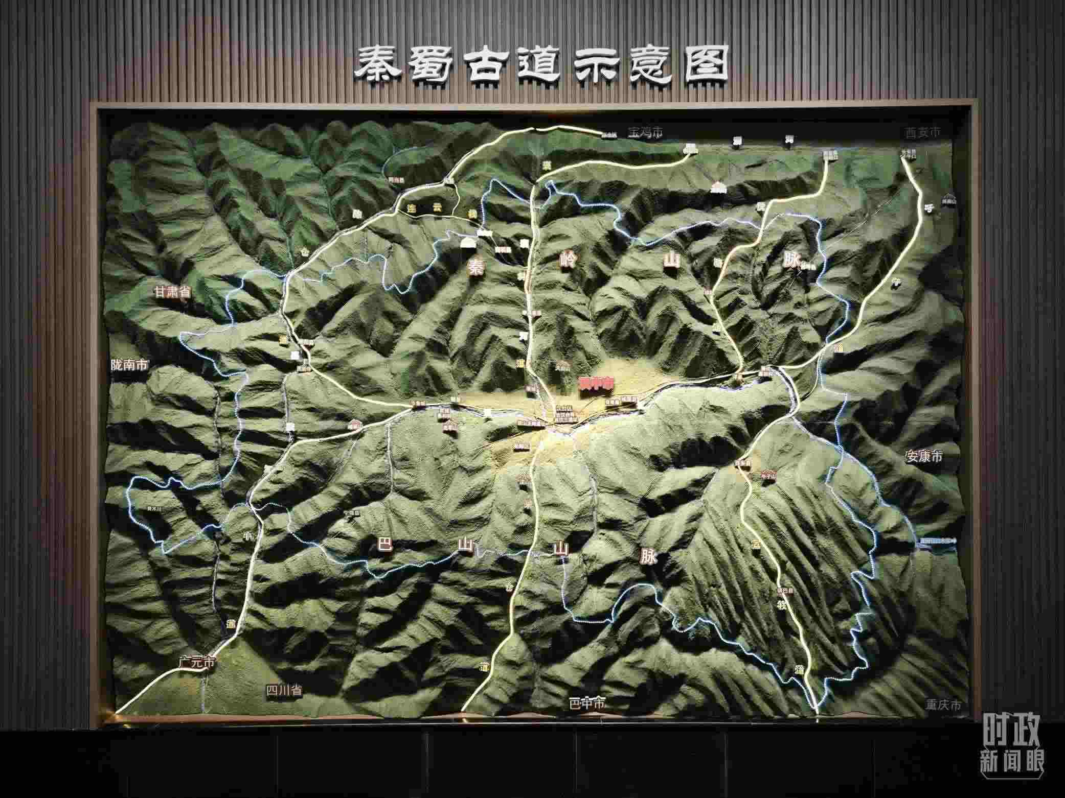 △漢中市博物館內展示的秦蜀古道示意圖。(總臺央視記者黎兵拍攝)