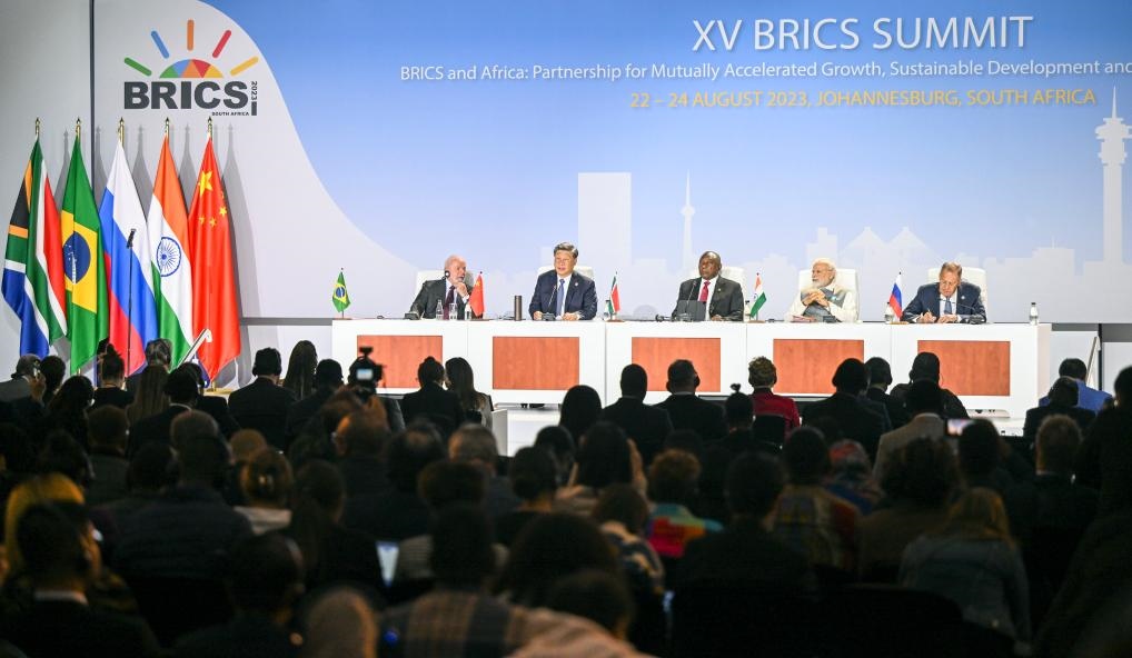 23日,在出席金磚國家領(lǐng)導人第十五次會晤時,習近平主席強調(diào),加速擴員進程,讓更多國家加入到金磚大家庭,集眾智、匯群力,推動全球治理朝著更加公正合理的方向發(fā)展。