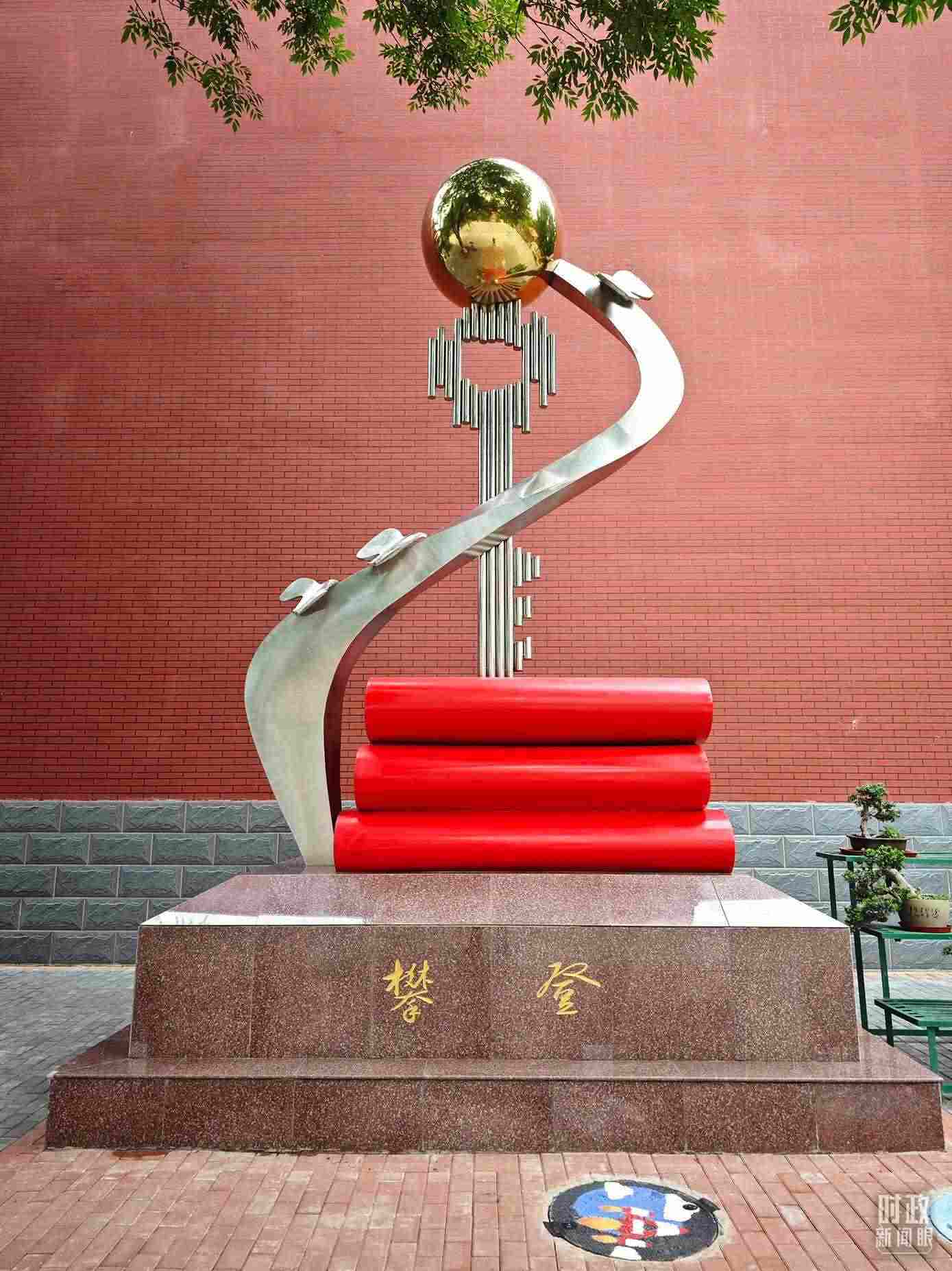 △北京育英學(xué)校內(nèi)的“攀登”雕塑。(總臺央視記者彭漢明拍攝)