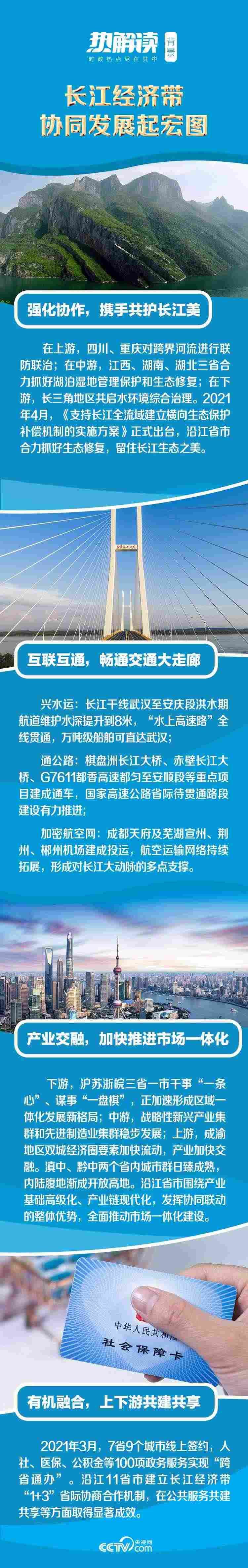 從環(huán)境保護(hù)到基礎(chǔ)設(shè)施互聯(lián)互通,從市場(chǎng)一體化建設(shè)到公共服務(wù)共建共享,長(zhǎng)江上中下游協(xié)同聯(lián)動(dòng)發(fā)展,打造出區(qū)域協(xié)調(diào)發(fā)展的新樣板。