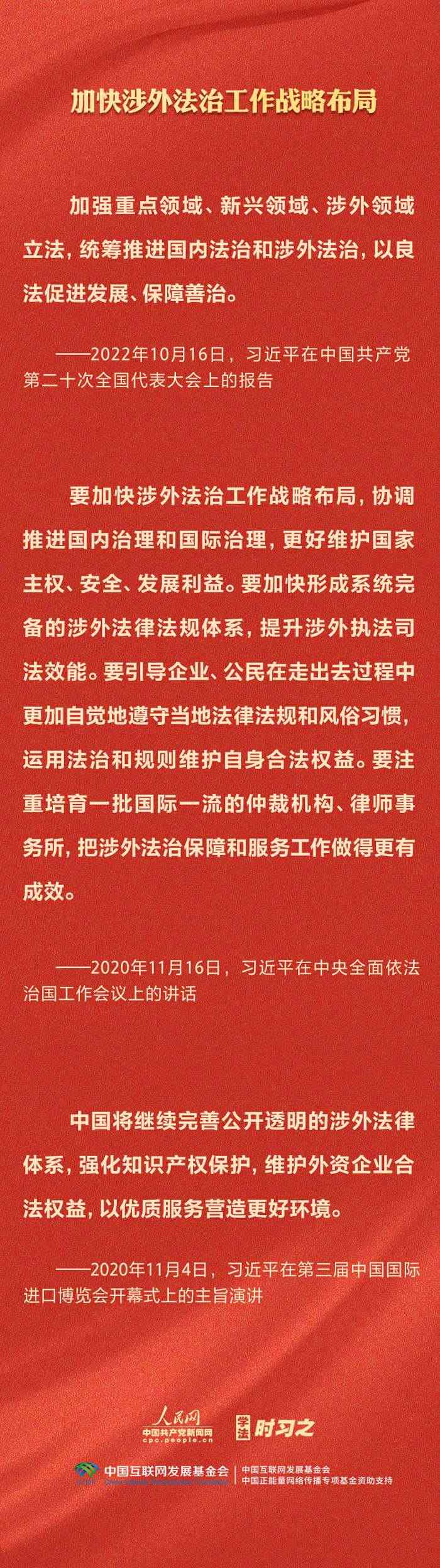 今年是貫徹落實(shí)黨的二十大精神的開(kāi)局之年。中共中央政治局決定從今年4月開(kāi)始,在全黨自上而下開(kāi)展學(xué)習(xí)貫徹習(xí)近平新時(shí)代中國(guó)特色社會(huì)主義思想主題教育。習(xí)近平法治思想是習(xí)近平新時(shí)代中國(guó)特色社會(huì)主義思想的重要組成部分,人民網(wǎng)·中國(guó)共產(chǎn)黨新聞網(wǎng)推出學(xué)法時(shí)習(xí)之·學(xué)習(xí)習(xí)近平法治思想系列策劃,本篇聚焦“堅(jiān)持統(tǒng)籌推進(jìn)國(guó)內(nèi)法治和涉外法治”。