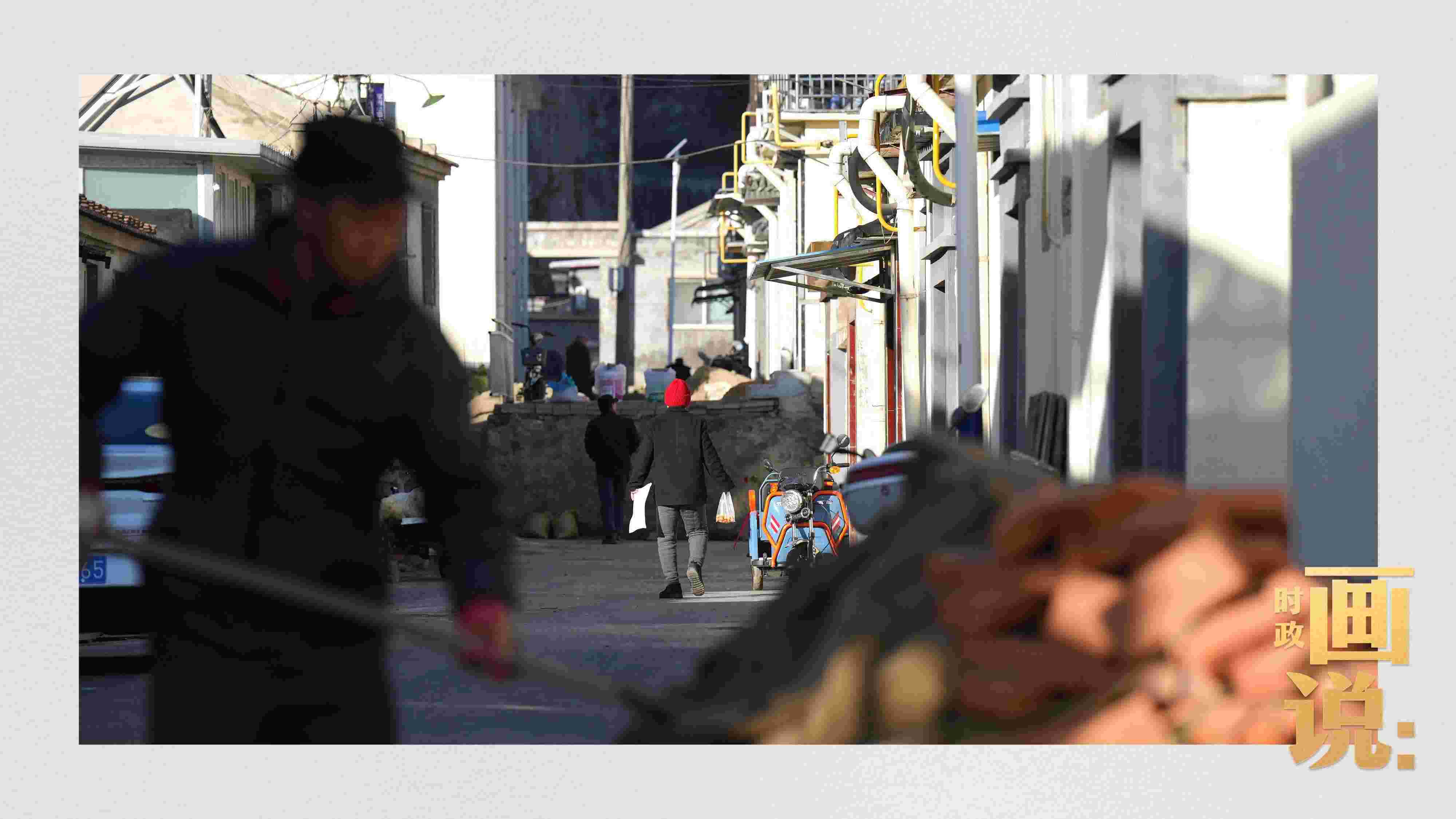 △買早點(diǎn)的老人走過村道。水峪嘴村,北京。大水過后,受災(zāi)嚴(yán)重的北京永定河流域村落加緊重建。