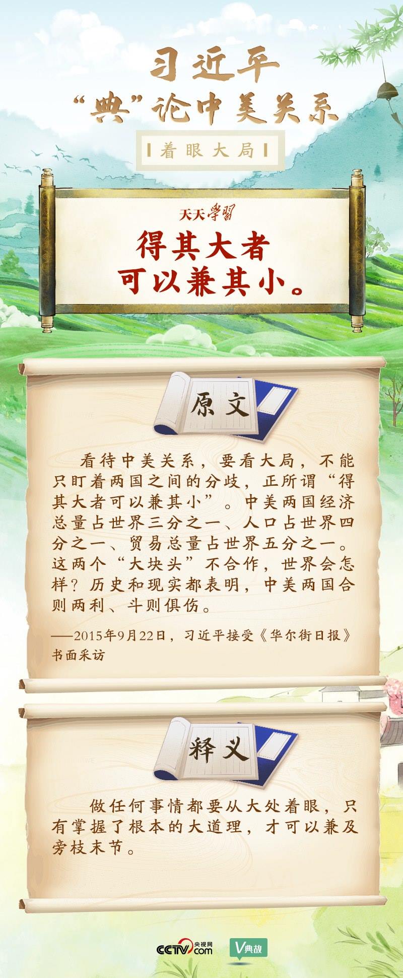 黨的十八大以來(lái),習(xí)近平主席就中美關(guān)系發(fā)表了一系列重要講話。他站在時(shí)代高度分析、研判中美關(guān)系現(xiàn)狀及發(fā)展趨勢(shì),并引經(jīng)據(jù)典為發(fā)展中美關(guān)系指出正確方向。這些論述蘊(yùn)含深刻的戰(zhàn)略思維和政治智慧,具有重大現(xiàn)實(shí)意義和深遠(yuǎn)歷史意義。央視網(wǎng)《天天學(xué)習(xí)》與您一起深刻領(lǐng)會(huì)。