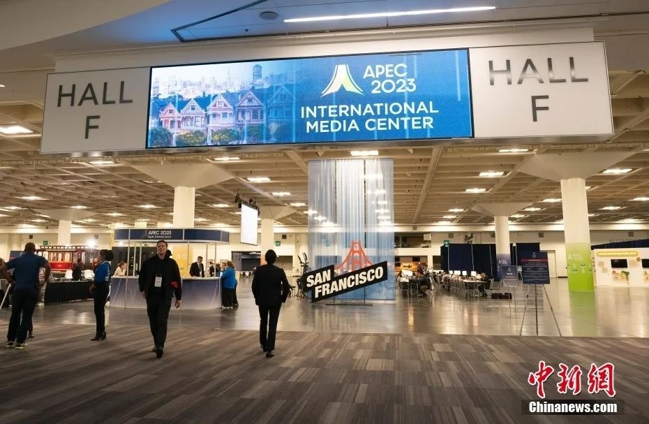 當(dāng)?shù)貢r間11月12日,各國記者在美國加州舊金山2023APEC會議國際媒體中心工作。中新社記者劉關(guān)關(guān) 攝