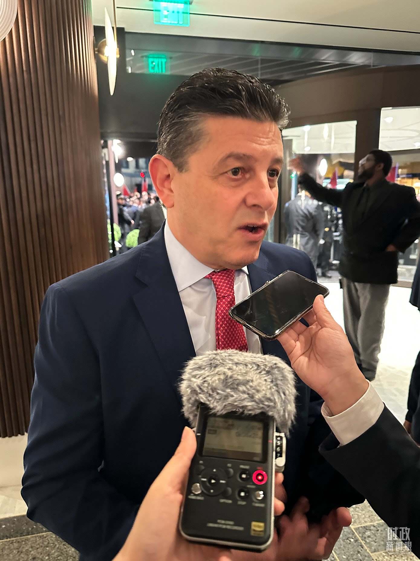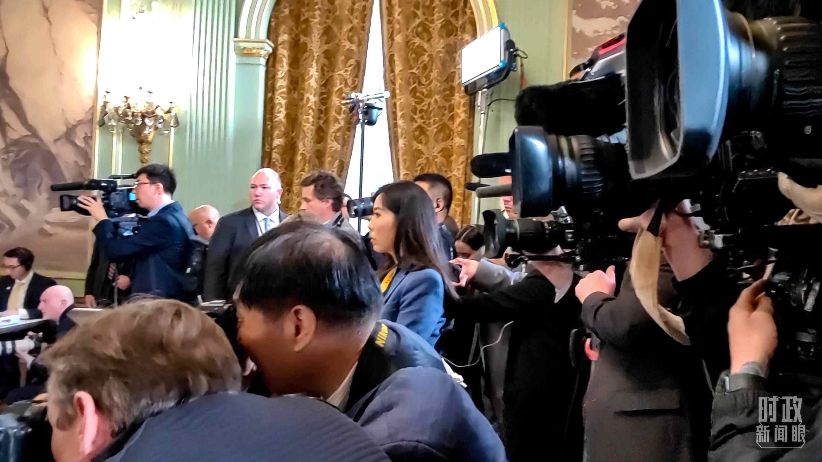 會晤現(xiàn)場,忙于拍攝的各國記者。(總臺央視記者張曉鵬拍攝)