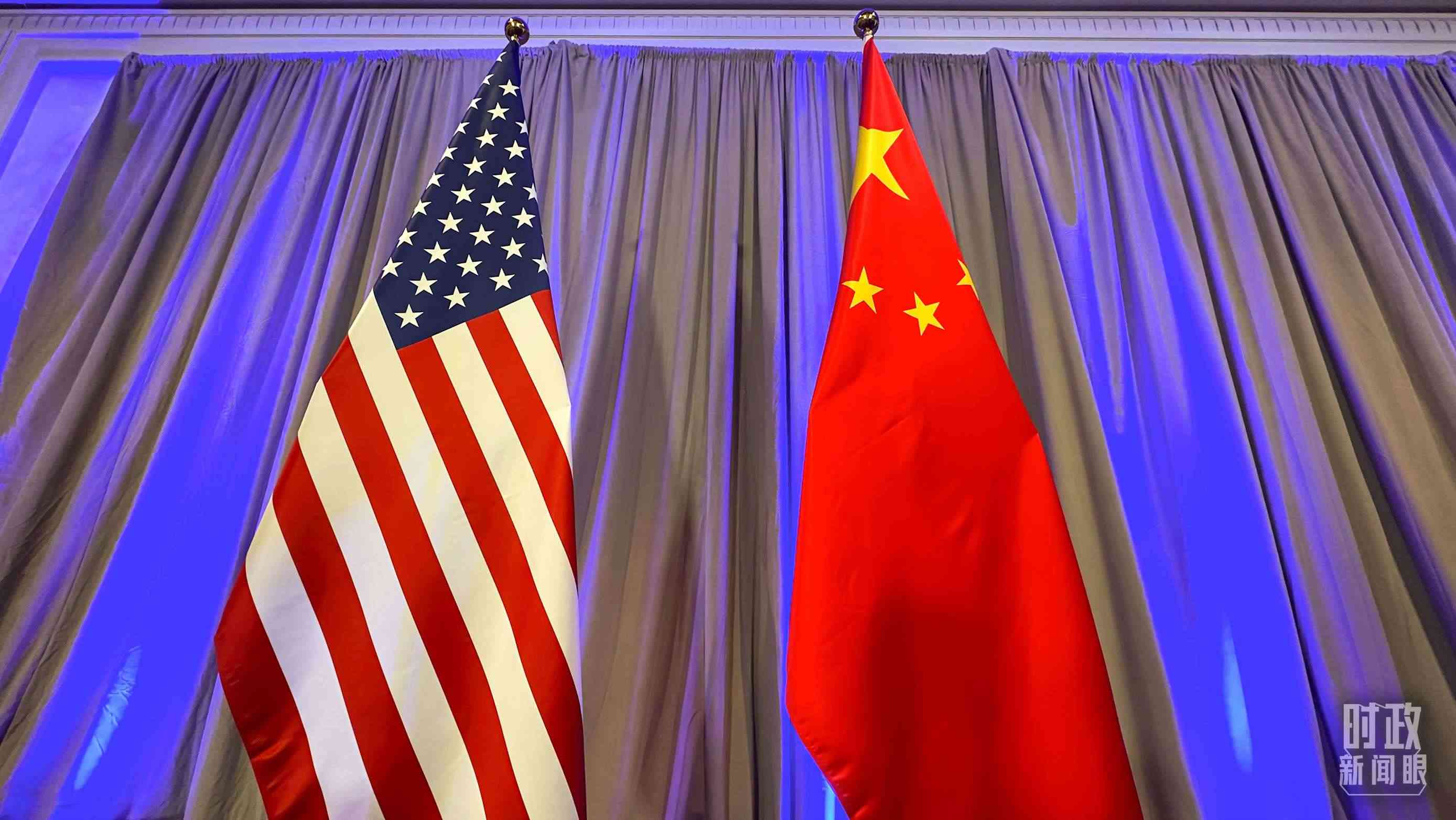 中美元首會晤合影廳的兩國國旗。(總臺央視記者楊波拍攝)