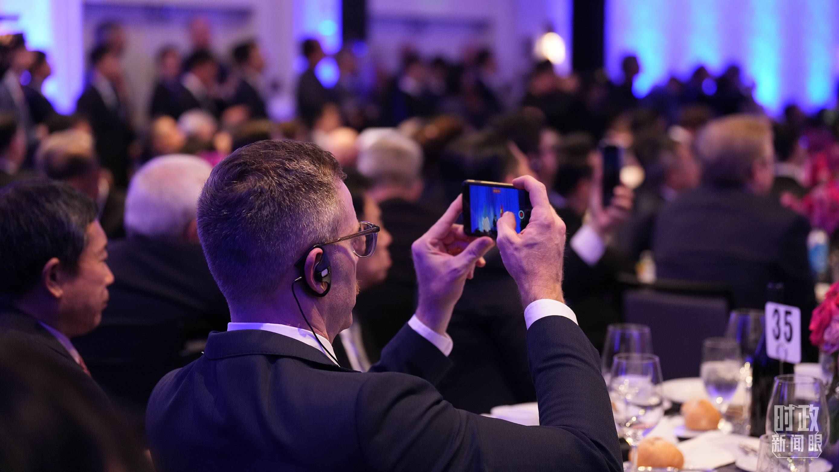 臺下聽眾用手機記錄歡迎宴會的精彩瞬間。(總臺國廣記者李晉拍攝)