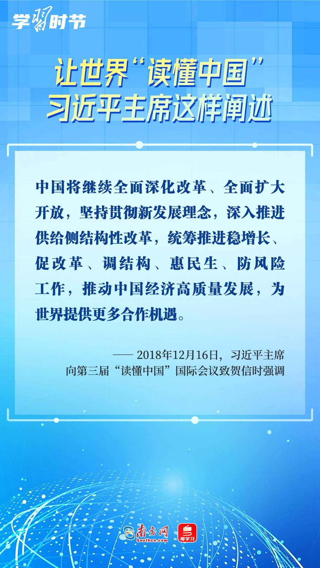 習(xí)近平主席高度重視“讀懂中國”國際會議,多次會見與會代表、向會議致辭或致賀信,闡述中國的發(fā)展道路、改革開放、對外政策等,讓我們一同學(xué)習(xí)。