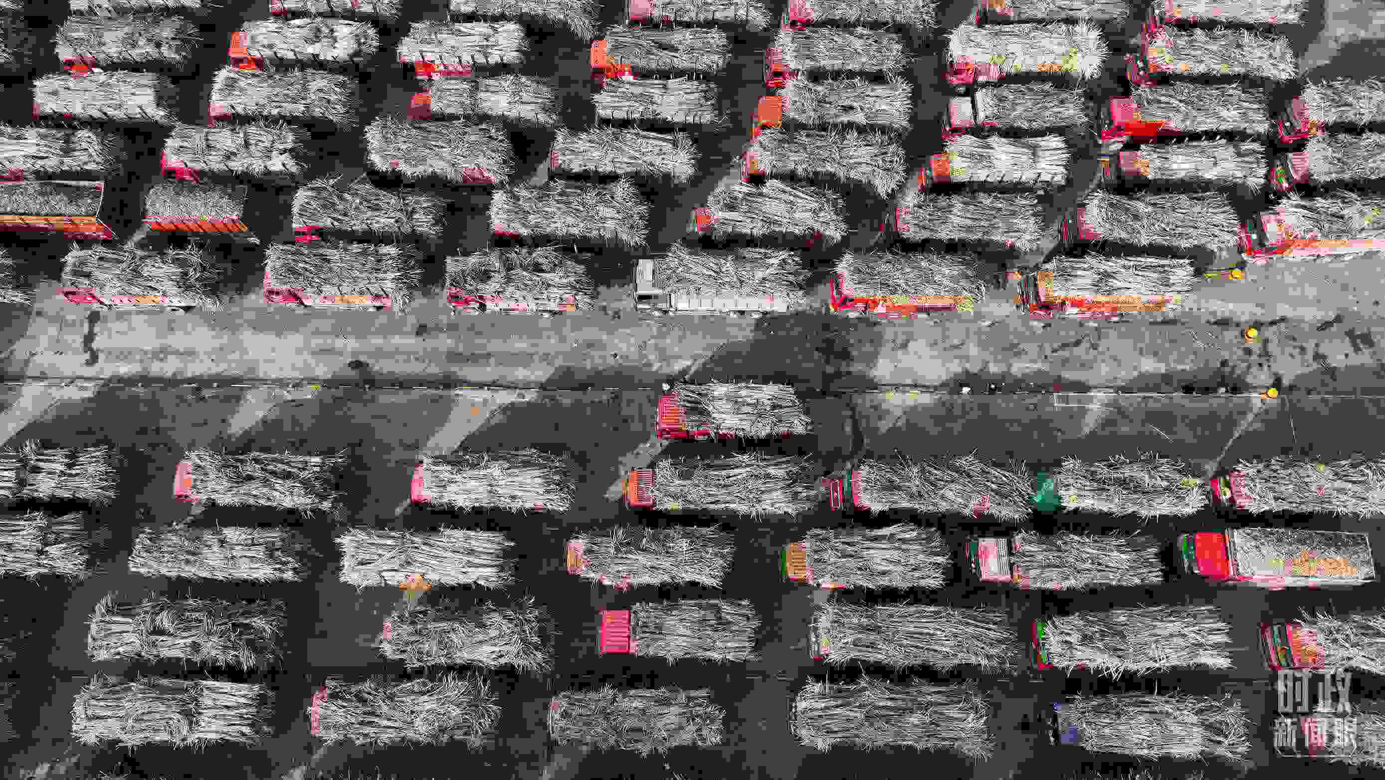 △來賓東糖鳳凰有限公司內的甘蔗原料停放區(qū)。(總臺央視記者范凱拍攝)