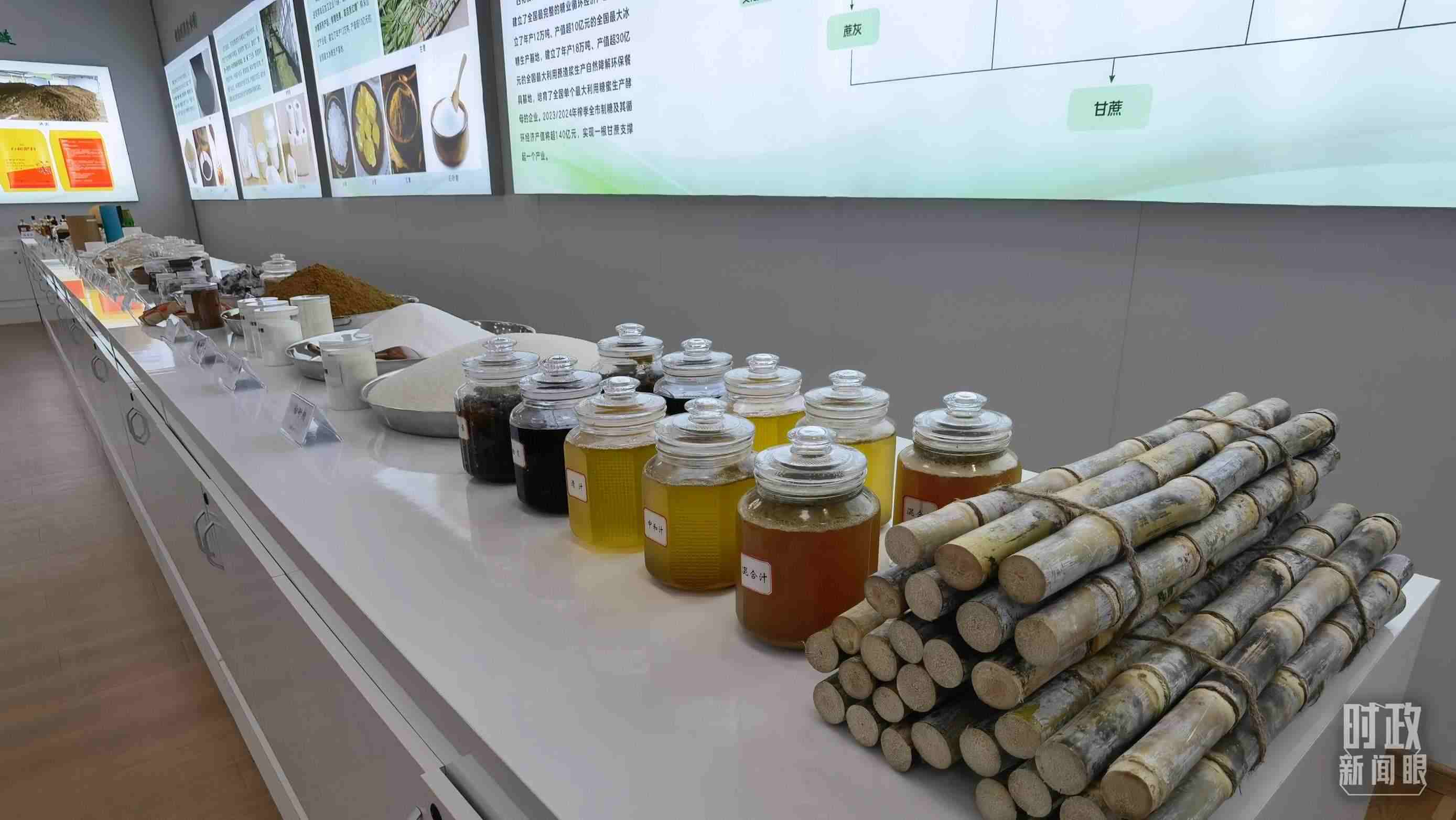 △甘蔗深加工產(chǎn)業(yè)鏈及產(chǎn)品展示。(總臺央視記者鐘銳拍攝)