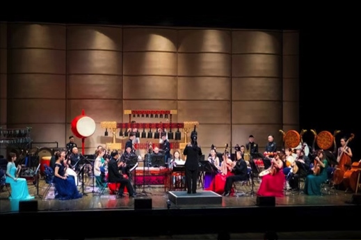 (▲2019年,來自湖北的“編鐘國(guó)樂”音樂會(huì)在美國(guó)俄亥俄州首府哥倫布市戴維森劇場(chǎng)上演)