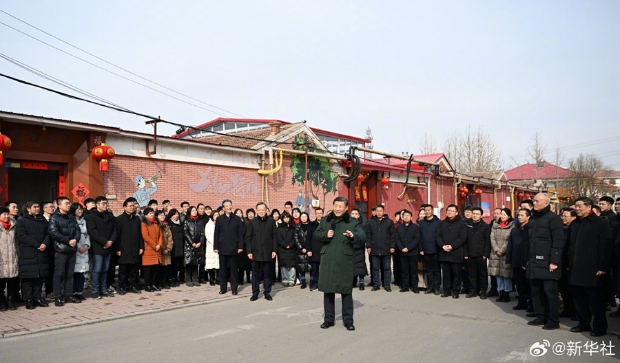 春節(jié)前夕,習(xí)近平總書記在天津考察調(diào)研,看望慰問基層干部群眾。2月1日上午,他首先來到西青區(qū)辛口鎮(zhèn)第六埠村,實(shí)地了解去年洪澇災(zāi)害后當(dāng)?shù)剞r(nóng)業(yè)生產(chǎn)恢復(fù)等情況,看望受災(zāi)群眾。當(dāng)天下午,他來到天津古文化街,察看節(jié)日市場供應(yīng)和歷史文化街區(qū)保護(hù)利用等情況。(文字記者:張曉松、朱基釵;攝影記者:鞠鵬、謝環(huán)馳、燕雁、殷博古、翟健嵐)