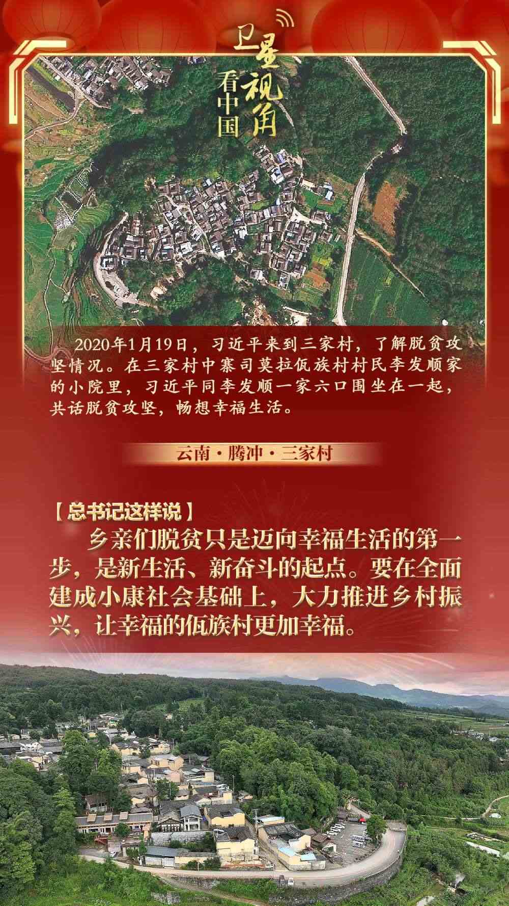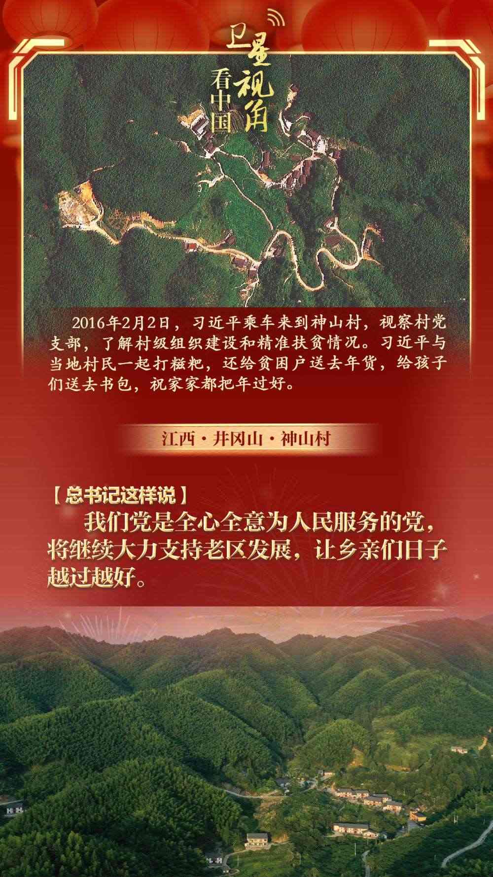 讓我們通過衛(wèi)星視角,看看總書記春節(jié)前夕考察過的那些鄉(xiāng)村,重溫總書記和村民們?cè)谝黄鸬臏嘏查g。
