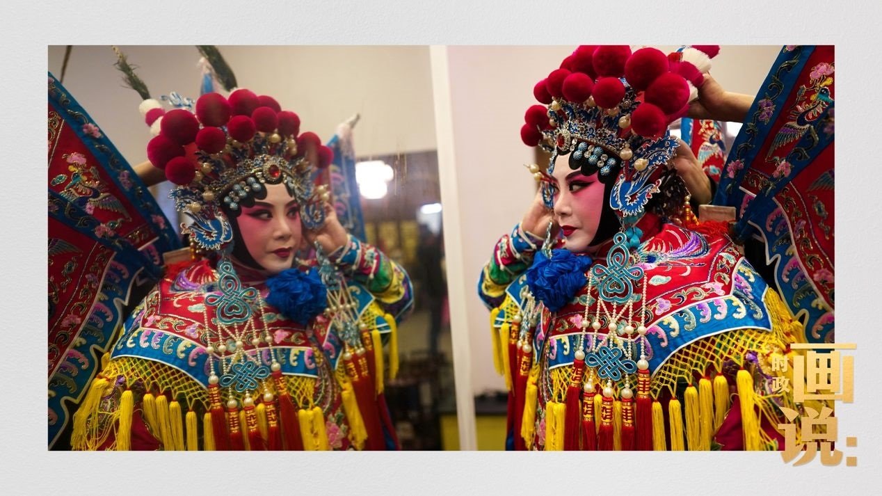 △常德高腔傳承人彭玲演唱經(jīng)典劇目《穆桂英掛帥》。