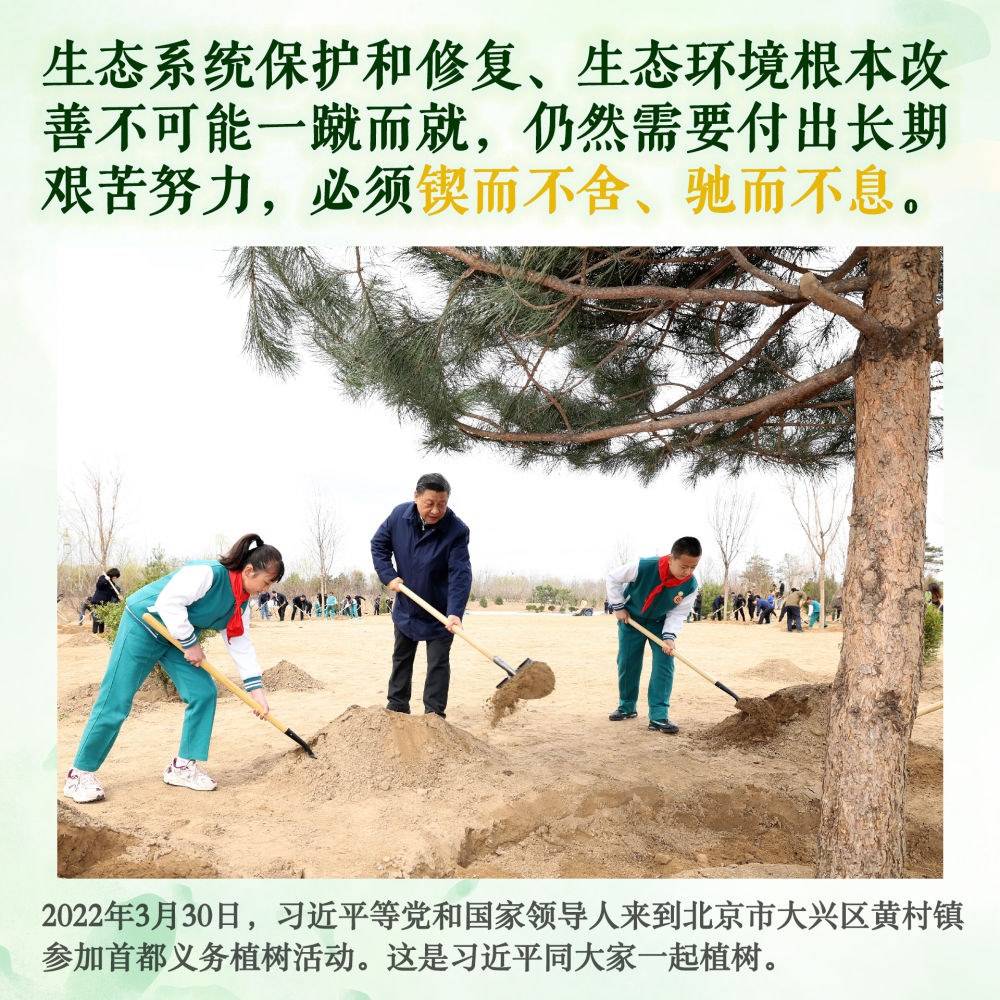 身體力行,持之以恒。此后的11個(gè)春天,無(wú)論晴雨,總書(shū)記都抽出時(shí)間加入植綠隊(duì)伍,并對(duì)國(guó)土綠化事業(yè)提出殷殷囑托。堅(jiān)持,是12年來(lái)總書(shū)記反復(fù)強(qiáng)調(diào)的關(guān)鍵內(nèi)涵。
