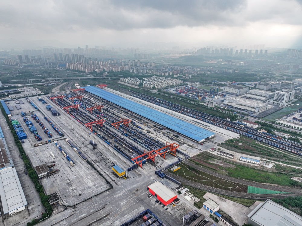 自重慶國(guó)際物流樞紐園區(qū)向北,一列列滿載貨物的中歐班列經(jīng)新疆霍爾果斯口岸出境,聯(lián)結(jié)起區(qū)域開放發(fā)展之路。
