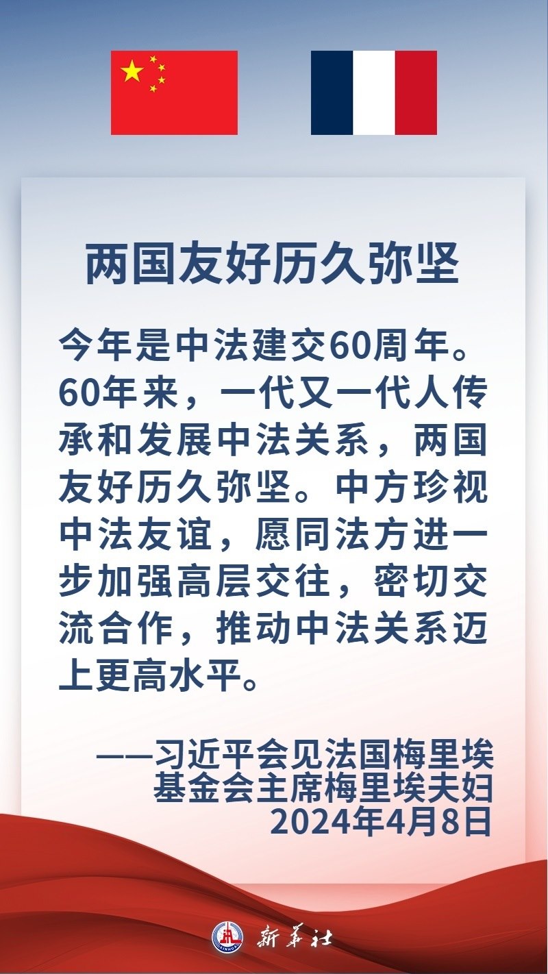 今年是中法建交60周年。60年來,中法始終堅持獨立自主的戰(zhàn)略抉擇,始終致力于通過互利合作實現(xiàn)共同發(fā)展、通過平等交流促進文明互鑒、通過多邊協(xié)調(diào)攜手應對全球性挑戰(zhàn)。近年來,在兩國元首引領下,中法關系保持高水平發(fā)展,也為中歐關系的健康穩(wěn)定發(fā)展發(fā)揮了重要作用。