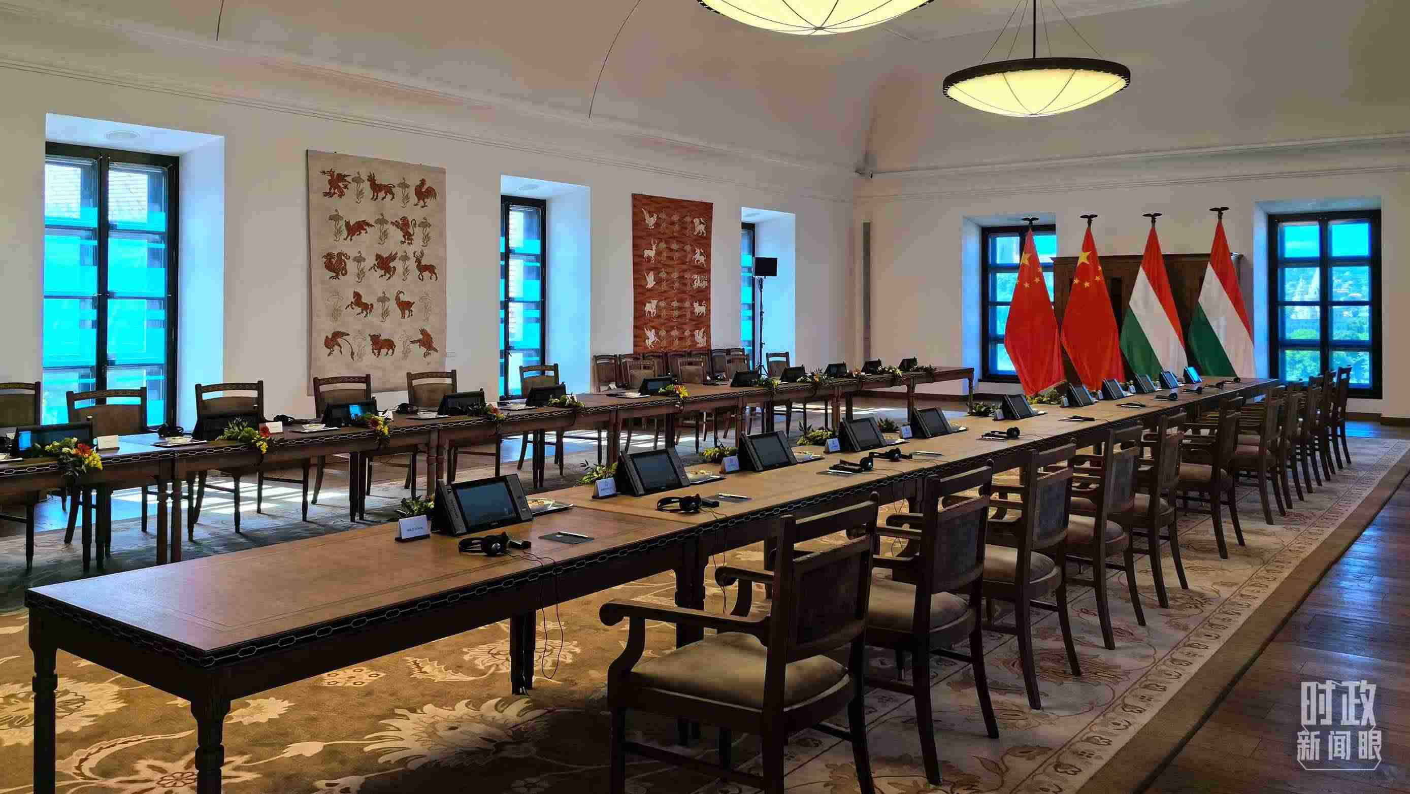 △5月9日,習(xí)主席同匈牙利總理歐爾班在這里舉行會(huì)談。這是會(huì)談開始前的現(xiàn)場(chǎng)。(總臺(tái)央視記者陸泓宇拍攝)