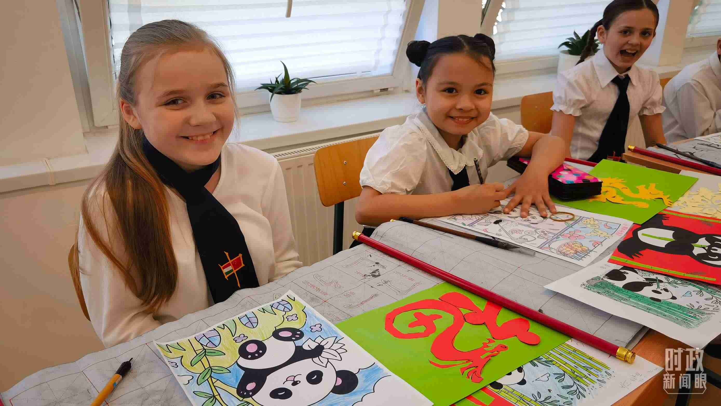 △匈中雙語學(xué)校中國傳統(tǒng)文化課堂上的孩子們。(總臺(tái)央視記者凌楓拍攝)