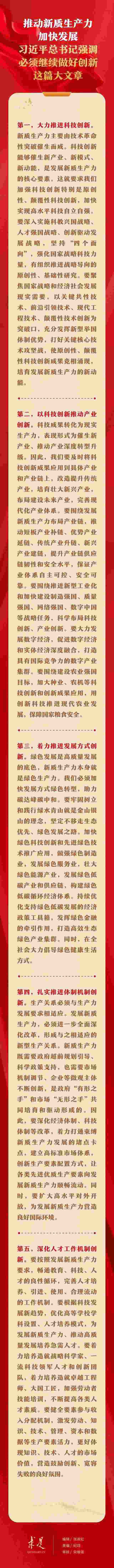6月1日出版的第11期《求是》雜志刊發(fā)習(xí)近平總書(shū)記重要文章《發(fā)展新質(zhì)生產(chǎn)力是推動(dòng)高質(zhì)量發(fā)展的內(nèi)在要求和重要著力點(diǎn)》。在這篇重要文章中,習(xí)近平總書(shū)記從科技創(chuàng)新、產(chǎn)業(yè)創(chuàng)新、發(fā)展方式創(chuàng)新、體制機(jī)制創(chuàng)新、人才工作機(jī)制創(chuàng)新等五個(gè)方面,對(duì)推動(dòng)新質(zhì)生產(chǎn)力加快發(fā)展提出明確要求。