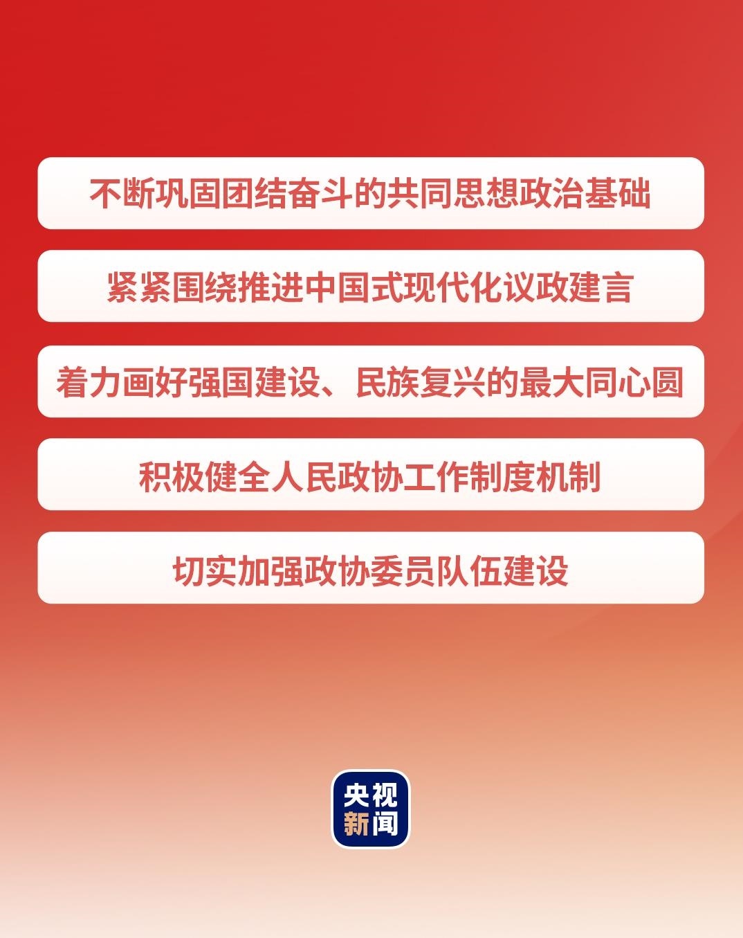 在這次慶祝大會上,習(xí)近平總書記從5個(gè)方面提出要求,寄望人民政協(xié)發(fā)揚(yáng)優(yōu)良傳統(tǒng),牢記政治責(zé)任,堅(jiān)持黨的領(lǐng)導(dǎo)、統(tǒng)一戰(zhàn)線、協(xié)商民主有機(jī)結(jié)合,充分發(fā)揮專門協(xié)商機(jī)構(gòu)作用,為推進(jìn)中國式現(xiàn)代化廣泛凝聚人心、凝聚共識、凝聚智慧、凝聚力量。