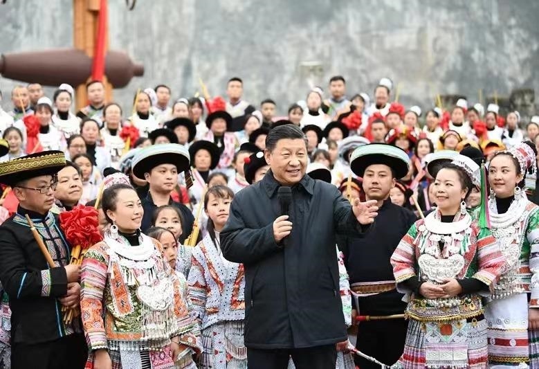 在四川大涼山腹地,走進(jìn)彝族貧困戶家里,和村民代表、駐村扶貧工作隊(duì)員圍坐在火塘邊,謀劃精準(zhǔn)脫貧之策;在貴州畢節(jié)化屋村,告訴鄉(xiāng)親們“全面小康一個(gè)民族不能少,全面建設(shè)社會(huì)主義現(xiàn)代化國家,一個(gè)民族也不能落下”;在西藏,指出“我們是一個(gè)中華民族共同體,要同舟共濟(jì)邁向第二個(gè)百年奮斗目標(biāo)”……習(xí)近平總書記多次走到各族群眾中間,傾聽他們的心聲,共話民族地區(qū)發(fā)展,中華民族共同體意識(shí)日益深入人心。