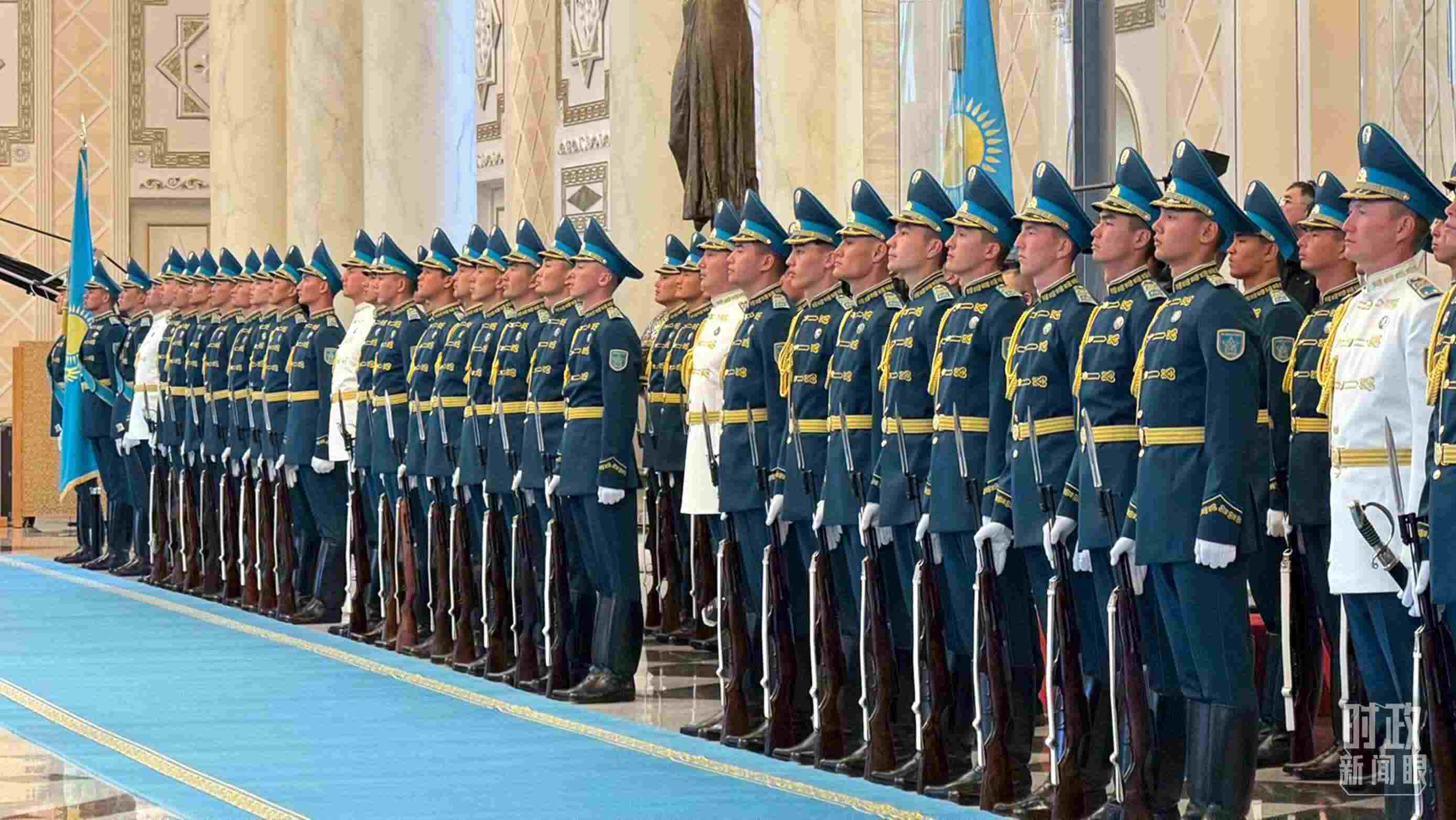 △哈薩克斯坦以最高禮儀歡迎習(xí)近平主席。(總臺(tái)央視記者張洛嘉拍攝)