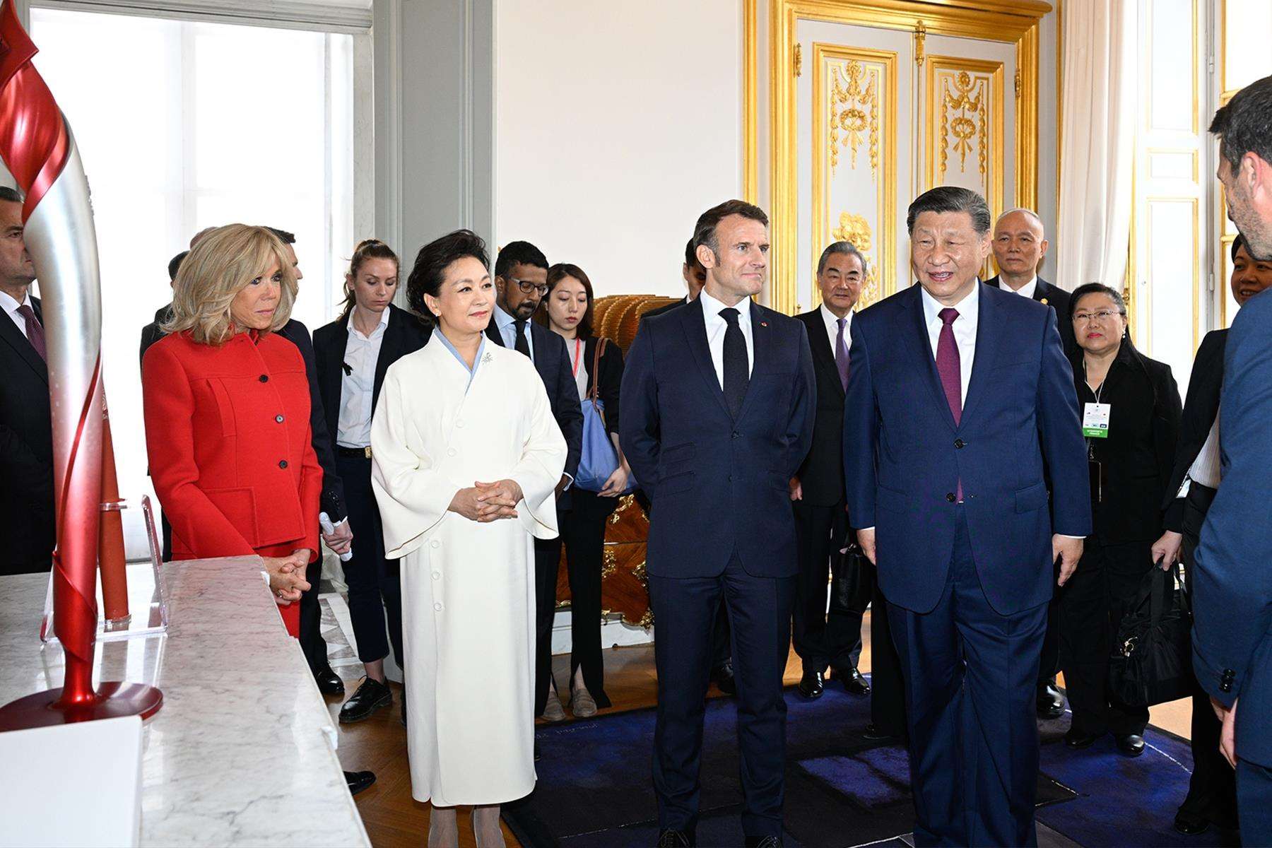 5月6日,愛麗舍宮一層肖像廳,正在法國進行國事訪問的習近平主席贈送給馬克龍總統(tǒng)北京雙奧火炬,馬克龍總統(tǒng)則以巴黎奧運火炬回贈。習近平主席微笑著說:“法國是一個體育強國,我衷心祝愿巴黎奧運會取得成功。中方將派出高水平代表團赴法參賽?!?/p>