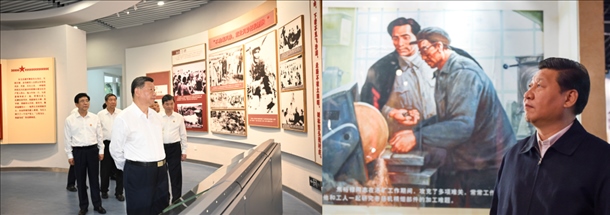 參觀谷文昌帶領(lǐng)全縣百折不撓植樹治沙事跡的展覽時,總書記駐足凝視,仿佛進(jìn)行著一場跨越數(shù)十年時空的對話。