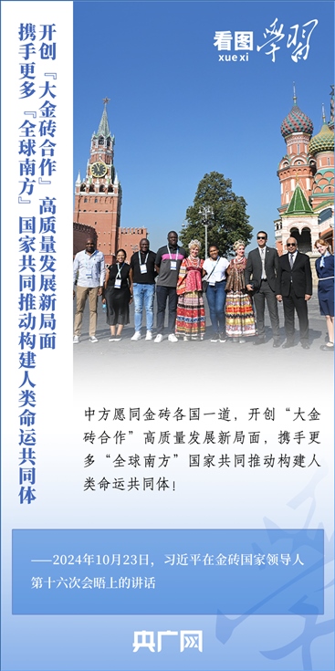 當(dāng)?shù)貢r(shí)間10月23日,國家主席習(xí)近平在俄羅斯喀山出席金磚國家領(lǐng)導(dǎo)人第十六次會(huì)晤并發(fā)表重要講話。習(xí)主席深刻闡述推動(dòng)“大金磚合作”高質(zhì)量發(fā)展的中國主張,就金磚大家庭發(fā)展合作提出五點(diǎn)務(wù)實(shí)舉措,表達(dá)了中方愿同金磚各國一道,攜手更多“全球南方”國家共同推動(dòng)構(gòu)建人類命運(yùn)共同體的真誠愿望。一起來學(xué)習(xí)!