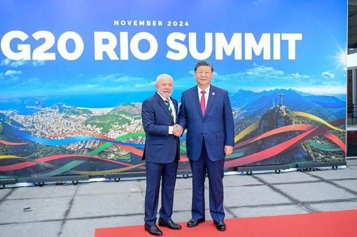 在此次里約熱內(nèi)盧峰會上,習(xí)近平主席倡議二十國集團(tuán)繼續(xù)做完善全球治理、推動歷史進(jìn)步的力量,并提出完善全球經(jīng)濟(jì)治理、金融治理、貿(mào)易治理、數(shù)字治理、生態(tài)治理、安全治理等中國方案。