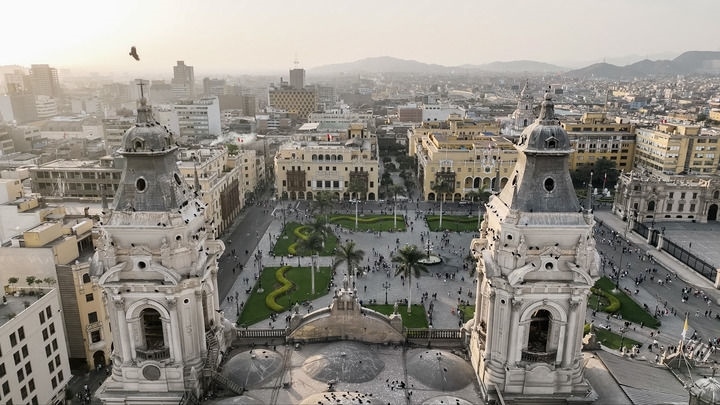 這是10月13日拍攝的秘魯首都利馬武器廣場(無人機照片)。新華社記者 李木子 攝