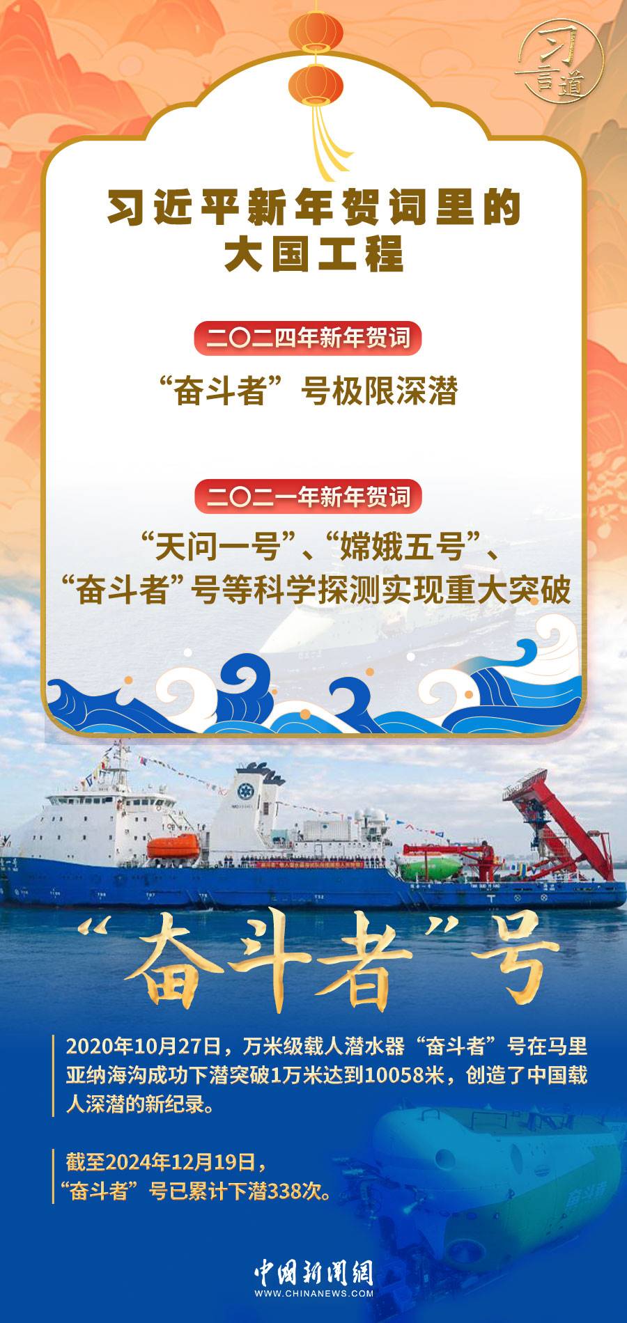 習(xí)近平主席在二〇二五年新年賀詞中,為中國人逐夢星辰大海的豪情壯志喝彩。新年之際,讓我們一起重溫習(xí)近平主席在新年賀詞中點贊的大國工程。
