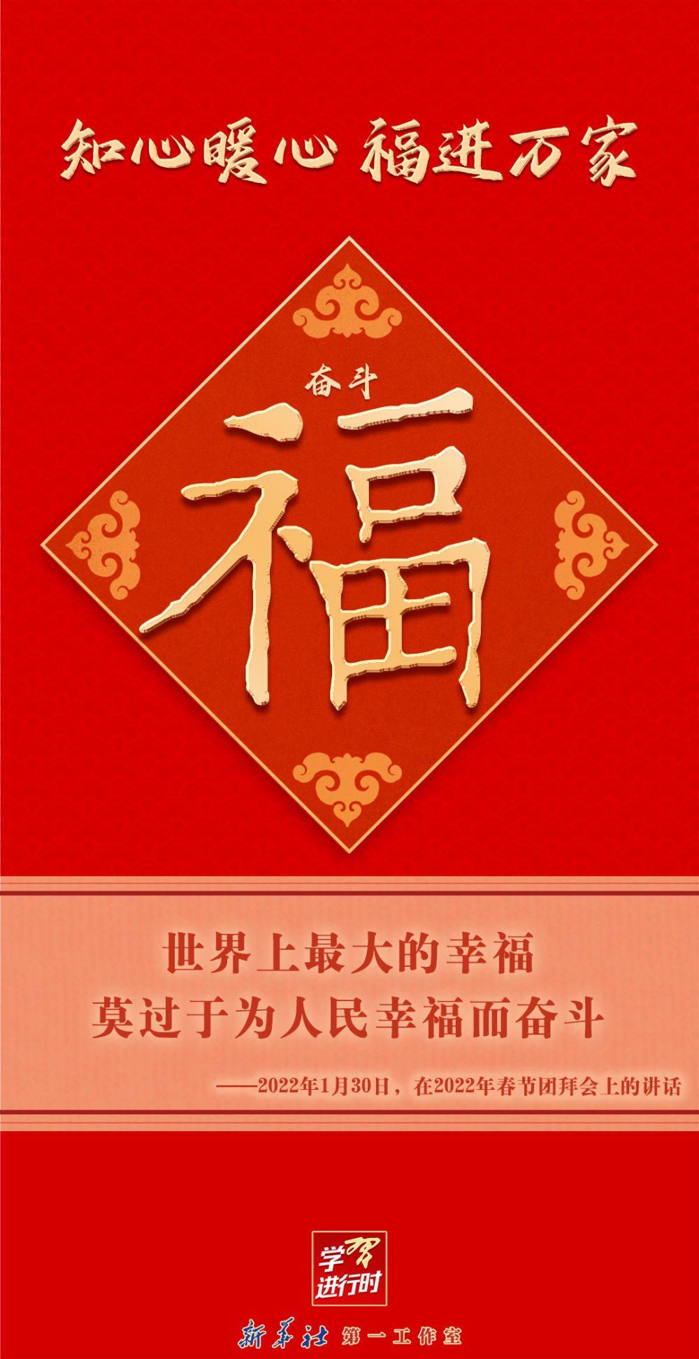 【學(xué)習(xí)進(jìn)行時(shí)】迎春納福,是中國人的春節(jié)習(xí)俗。一個(gè)“?!弊郑休d著中國人對(duì)美好生活的向往。這些年,習(xí)近平總書記很多知心話道出了我們對(duì)幸福的追求。乙巳蛇年春節(jié)來臨之際,一起重溫。