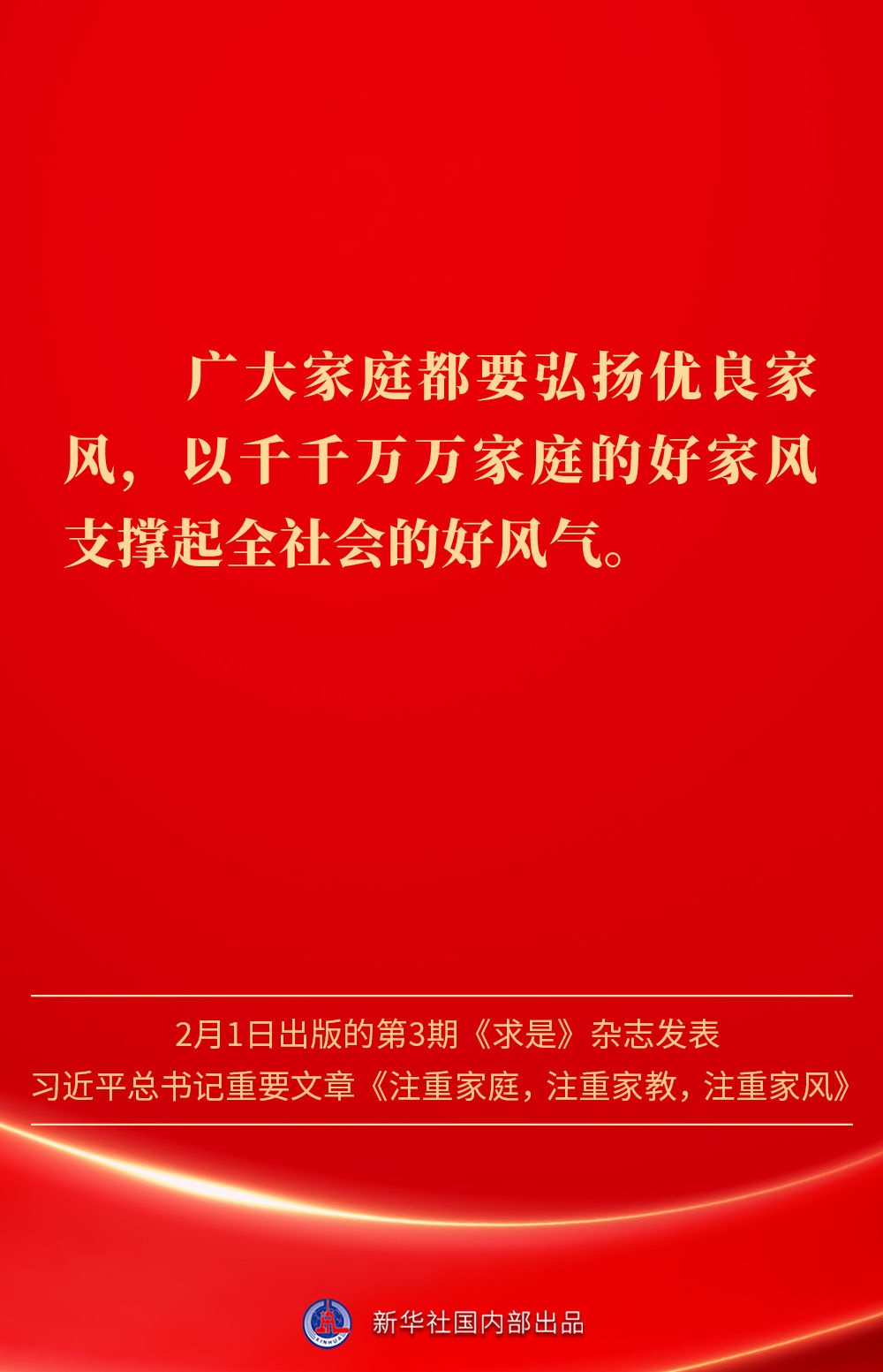 萬家團(tuán)圓共慶新春佳節(jié)之際,2月1日出版的第3期《求是》雜志發(fā)表習(xí)近平總書記重要文章《注重家庭,注重家教,注重家風(fēng)》。為什么要注重家庭、家教、家風(fēng)?如何做好家庭文明建設(shè)?習(xí)近平總書記這樣闡述——