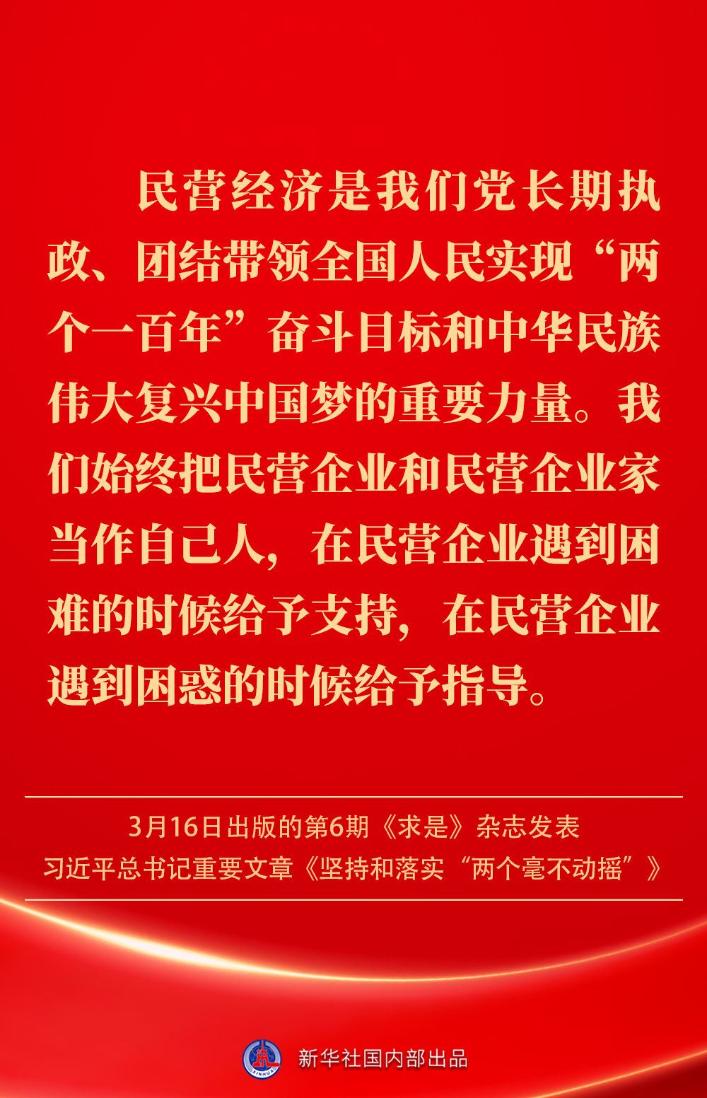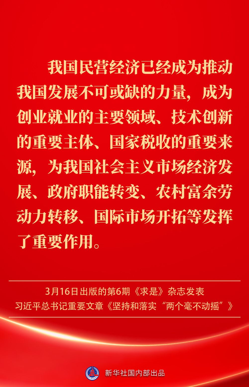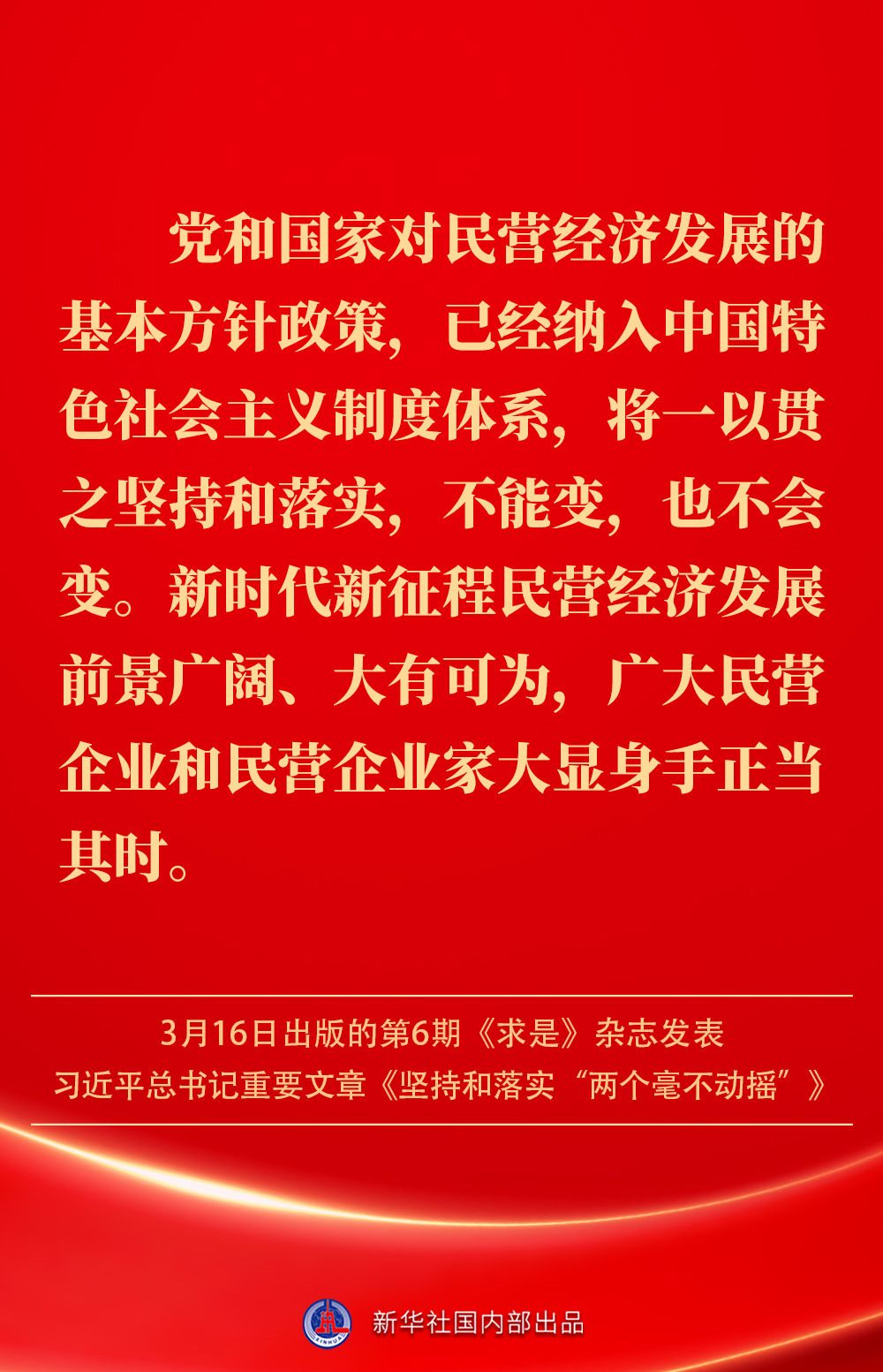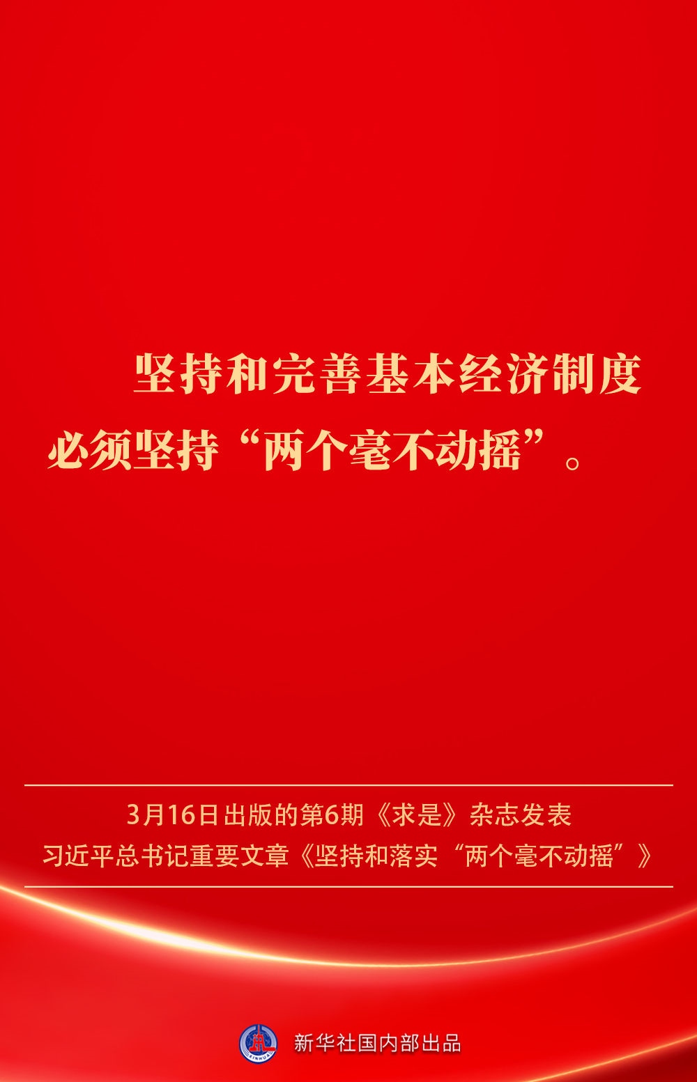 3月16日出版的第6期《求是》雜志發(fā)表習近平總書記重要文章《堅持和落實“兩個毫不動搖”》。這是習近平總書記2013年11月至2025年2月期間有關重要論述的節(jié)錄。如何認識“兩個毫不動搖”?公有制經(jīng)濟和非公有制經(jīng)濟是怎樣的關系?習近平總書記這樣闡述——